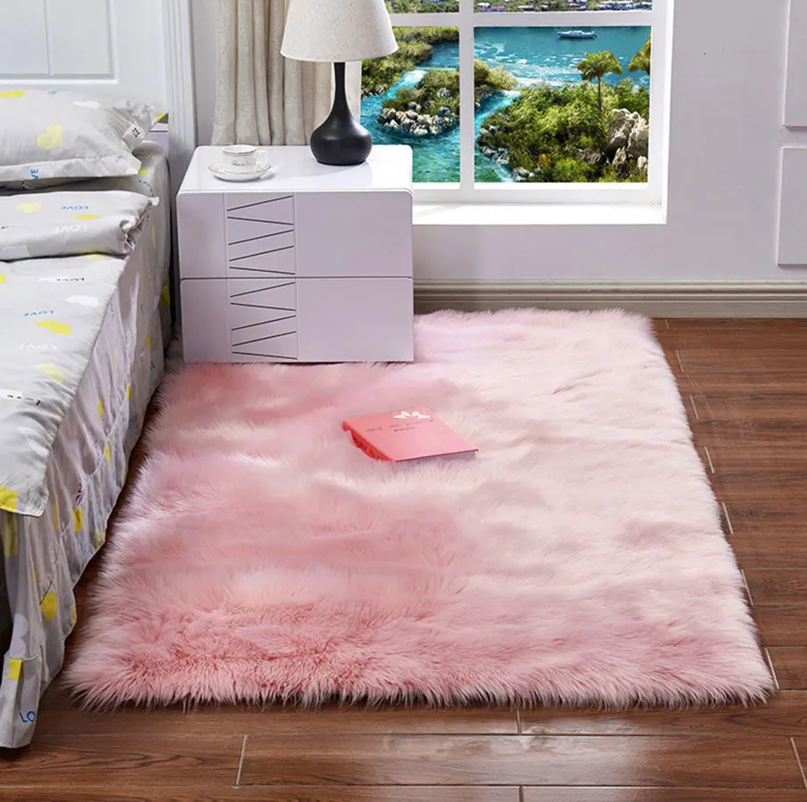 Коврик из искусственного меха используется как для подушки сиденья стула, так и для декора гостиной спальни.