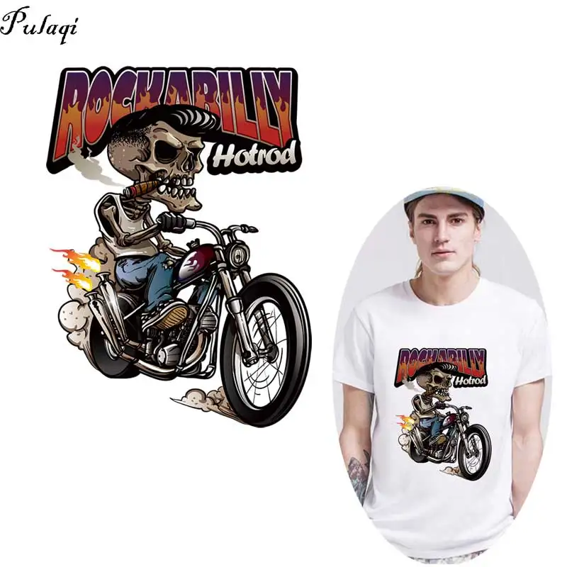Мотоциклетная Байкерская нашивка полоски на одежде череп нанесение одного цветка аппликация Железо на пластыри теплопередача для одежды