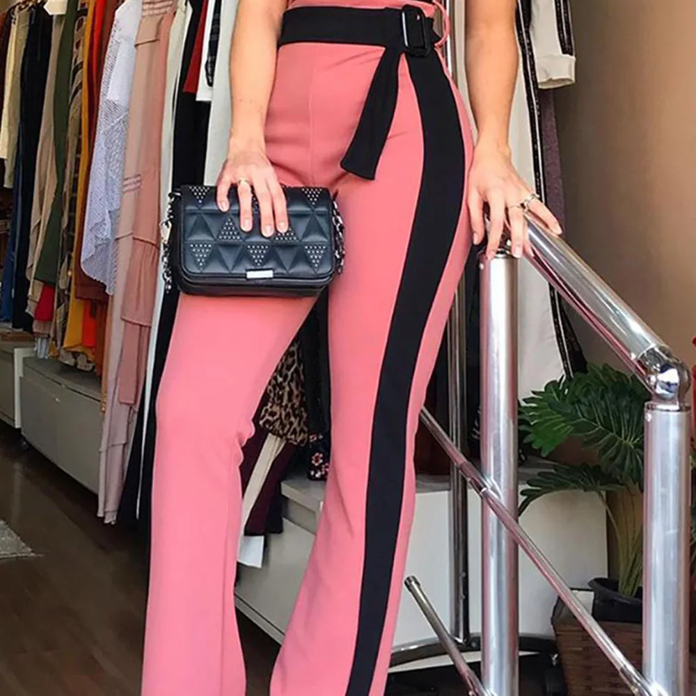 Женский комплект из двух предметов, рубашка с длинными рукавами и геометрическими цепочками и брюки-карандаш, осень 2019