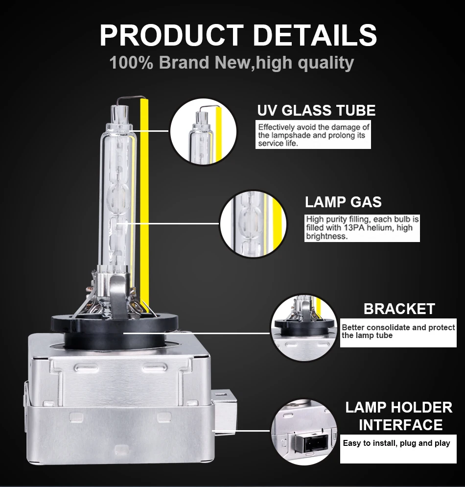 Информация об изделии Тип розетки: D1S D2S D3S D4S / D1R D2R D3R D4R D2C Светильник источник света: ксеноновая лампа Мощность: 35 Вт Напряжение: 12V Цветовая температура: 4300K 6000K 8000K 10000K Особенности: длительный срок службы, высокое качество, супер яркий Тип: фары