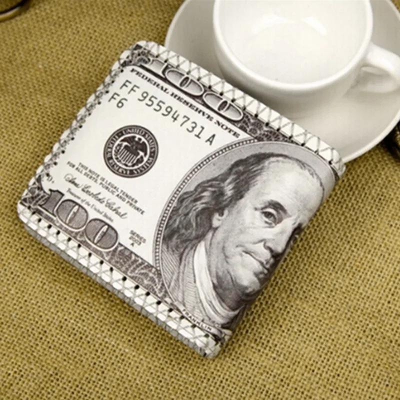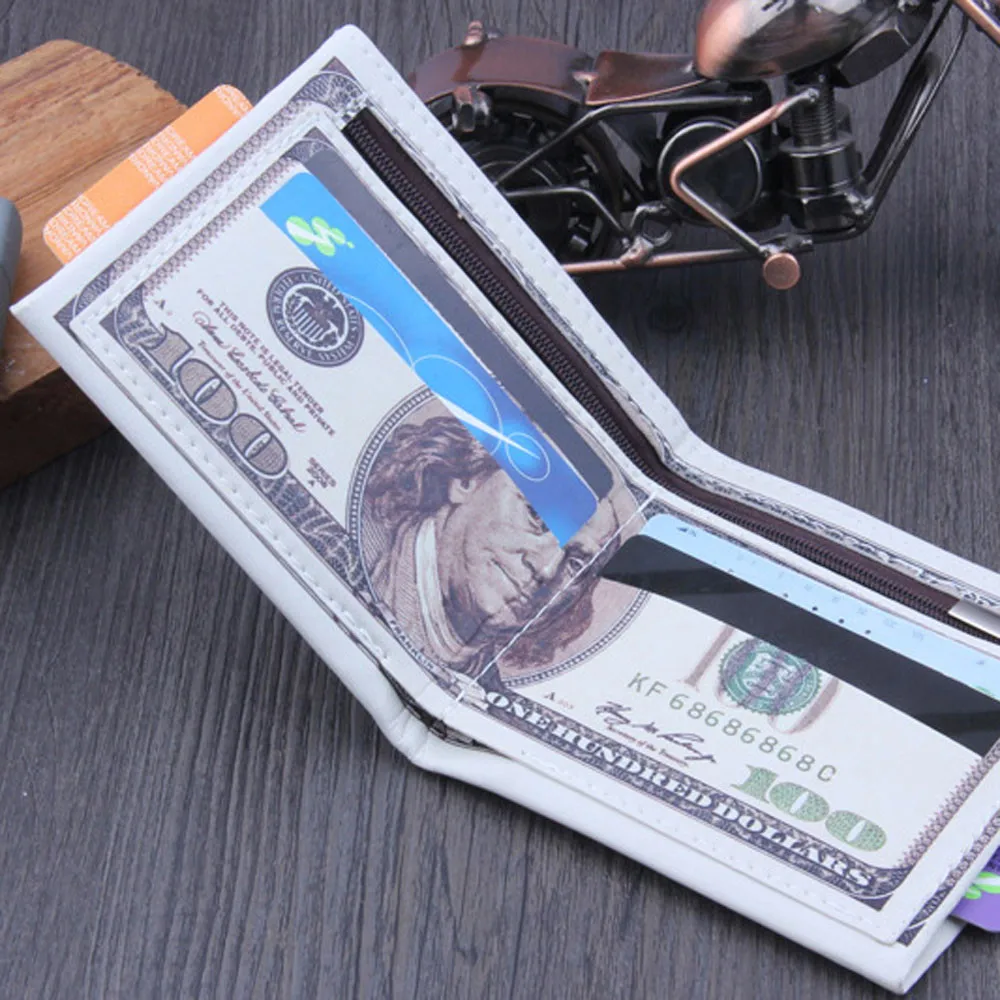 Кошелек для купюр в долларах США, коричневый кожаный бумажник, двойная фотография для кредитных карт