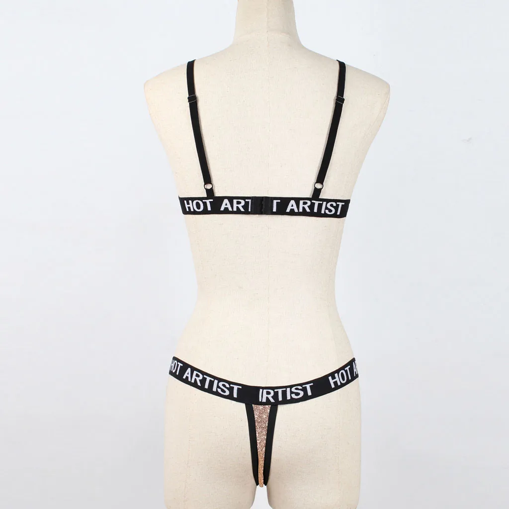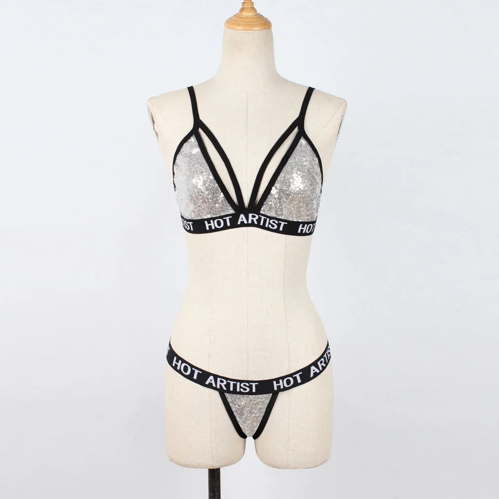 Женское сексуальное нижнее женское белье с блестками корсет с эффектом пуш-ап нижнее белье бюстгальтер трусы набор