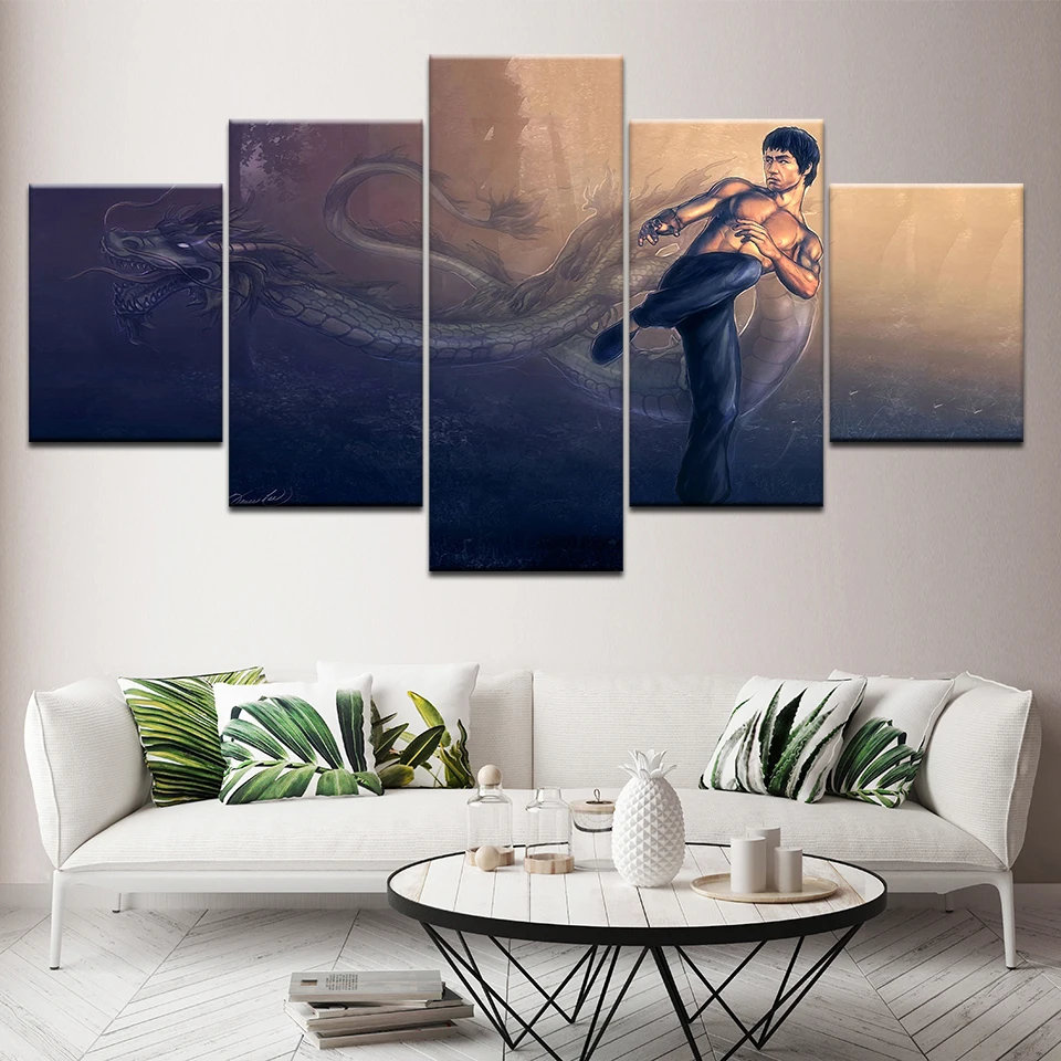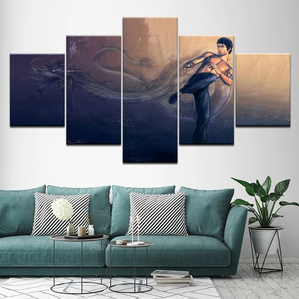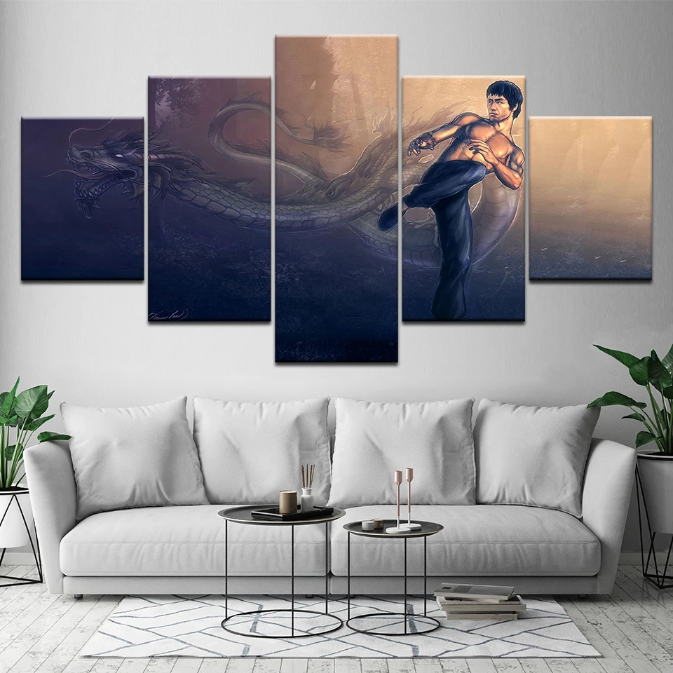 Modname = ckeditorСовременные рамки для картины, нарисованные на холсте 5 панель кунг-фу суперзвезда Брюс Ли куадро домашний декор искусство печать модульные фотографии
