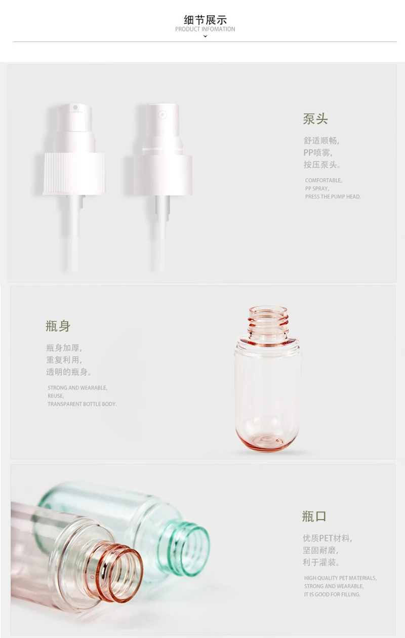 100% новые и высококачественные Материал: пластик Цвет: зеленый/розовый/прозрачный Размер: 40 мл Тип: бутылка-спрей и бутылка для лосьона Посылка: 1 шт.