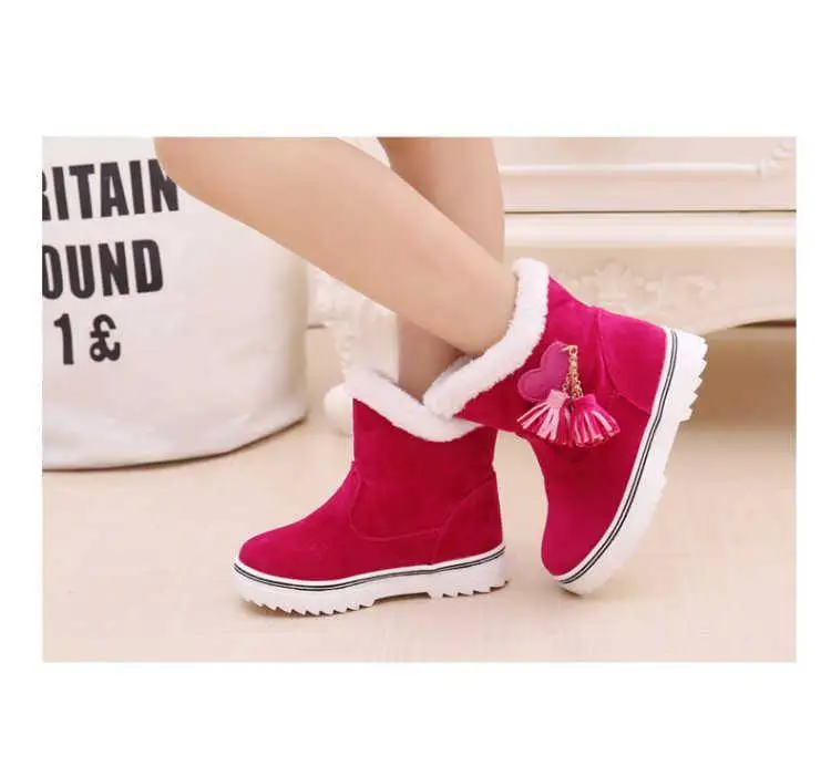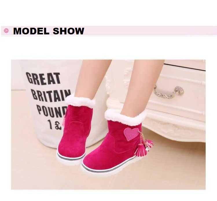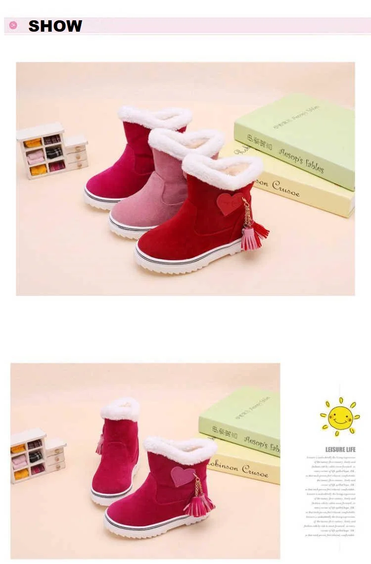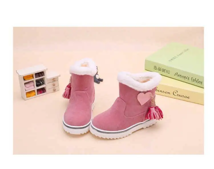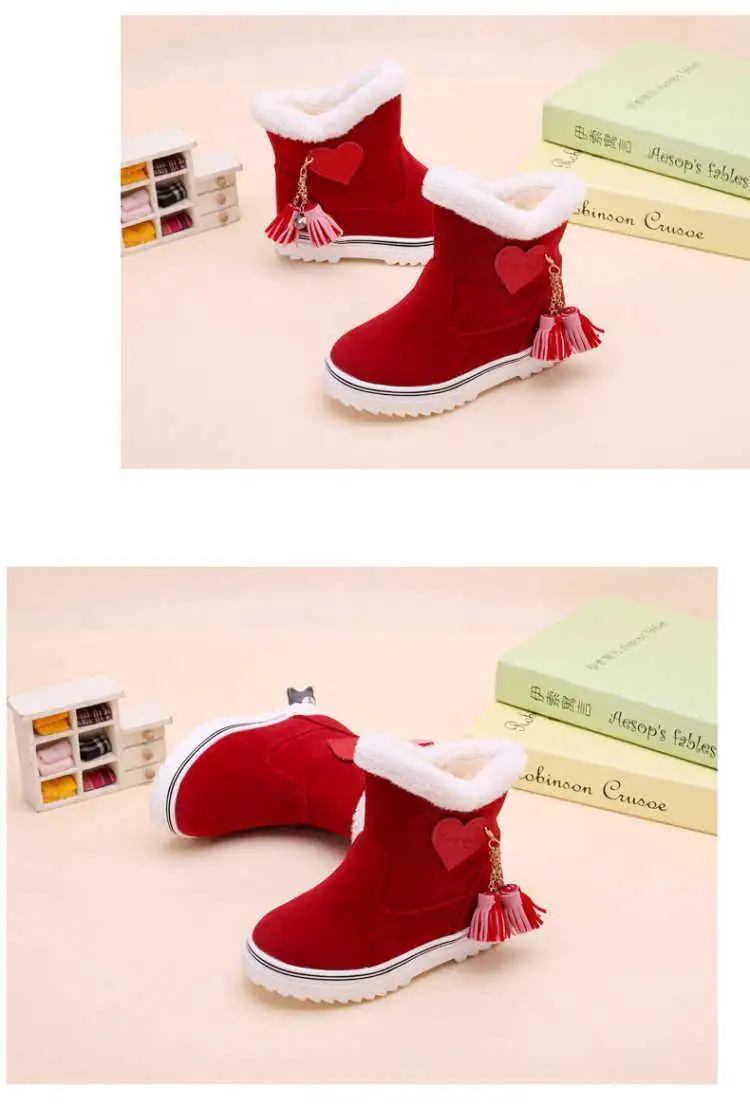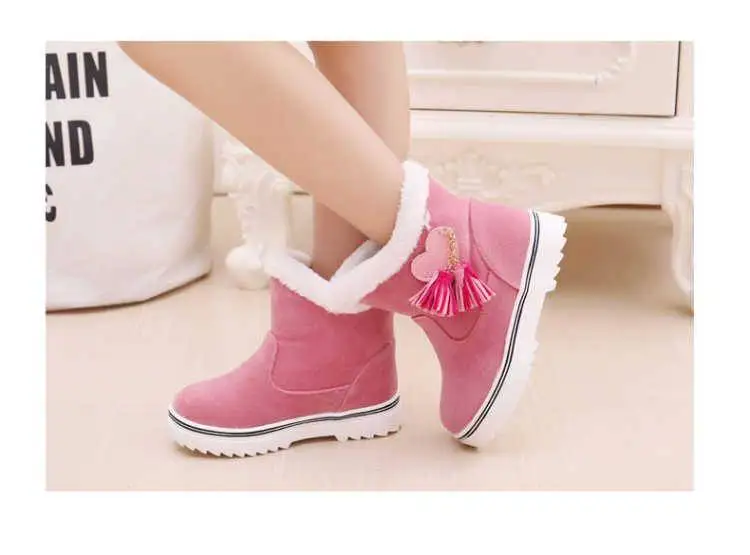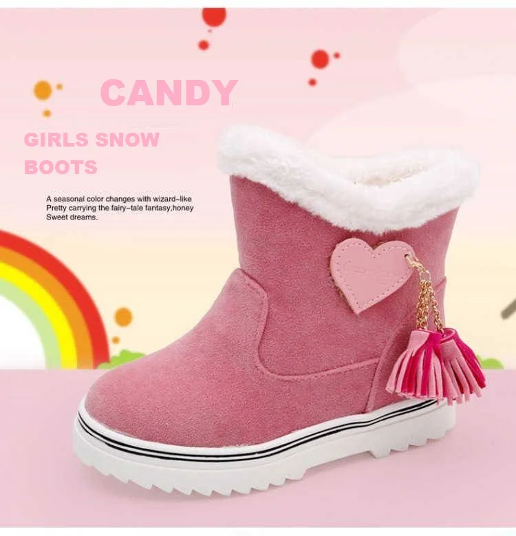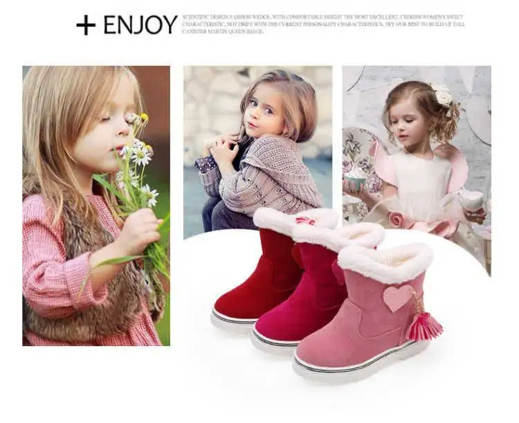 Зимние сапоги для девочек; коллекция 2019 года; модные детские зимние теплые широкие плюшевые водонепроницаемые сапоги принцессы с бахромой; детская резиновая обувь для девочек