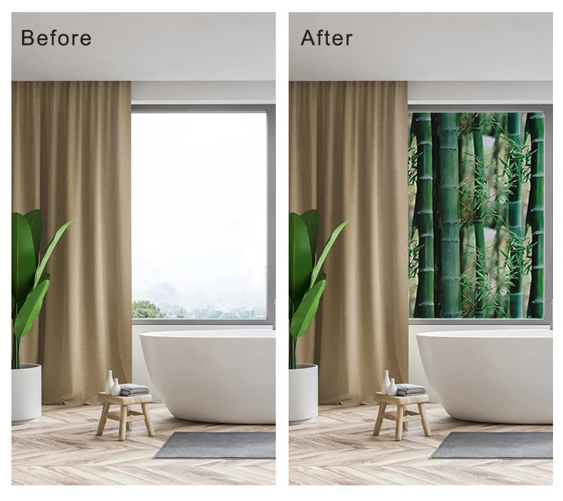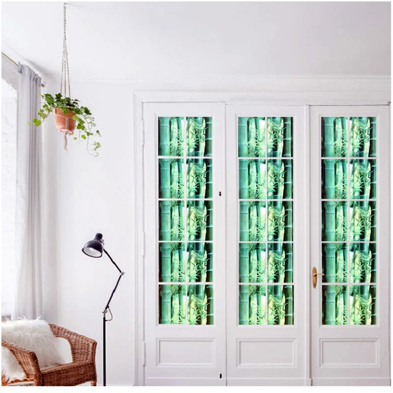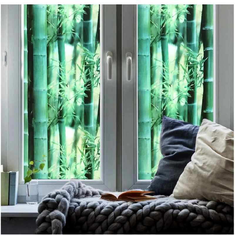 Зеленая наклейка из бамбукового стекла, статическая термоизоляция, защита конфиденциальности, защита от УФ-лучей, многоразовое съемное украшение для окна