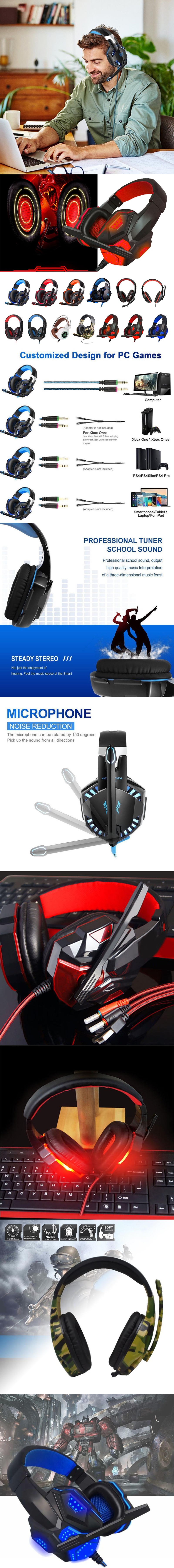 Особенности: 100% новый бренд и высокого качества Сабвуфер с реалистичными эффектами-50 мм, сабвуфер, Динамик Звуковой катушки и магнитный динамик cymbal и полость воздушного кольца обеспечивают реалистичное звуковое поле, четкость звука и звук в шоке Высокоэффективный, высокопроизводительный голосовой всенаправленный емкостный Полярный микрофон, 36 дБ, обеспечивает высокое качество общения Удобно носить, эргономичный дизайн, мягкие наушники из ПУ и легкая головная повязка Эластичная Повязка на голову не остается на шее Совместим с мобильными телефонами, планшетами, компьютерами, mp4, PS4 / PS3/переключателями и т. д.