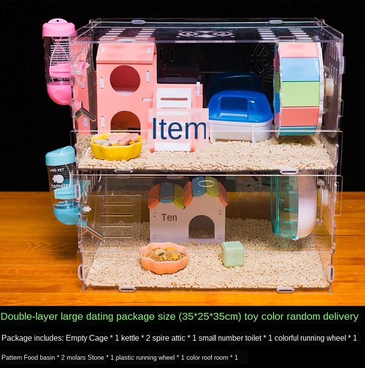Клетка для хомяков акриловая прозрачная Золотая Медвежонок большая вилла двухслойные гнезда Ежик поставки посылка в комплекте