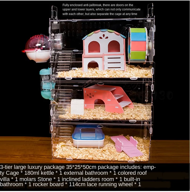 Детская клетка для хомяка, акриловый Золотой медведь, три слоя, супер большая прозрачная вилла, принадлежности, игрушки