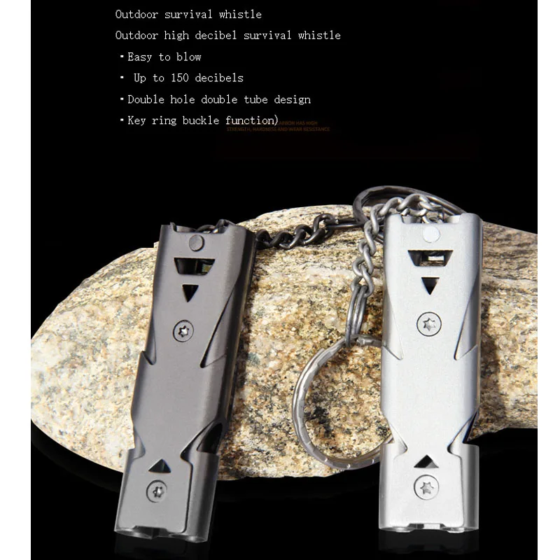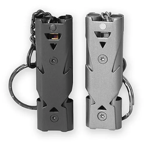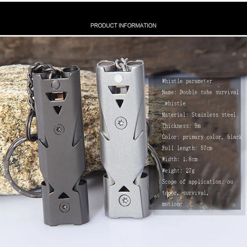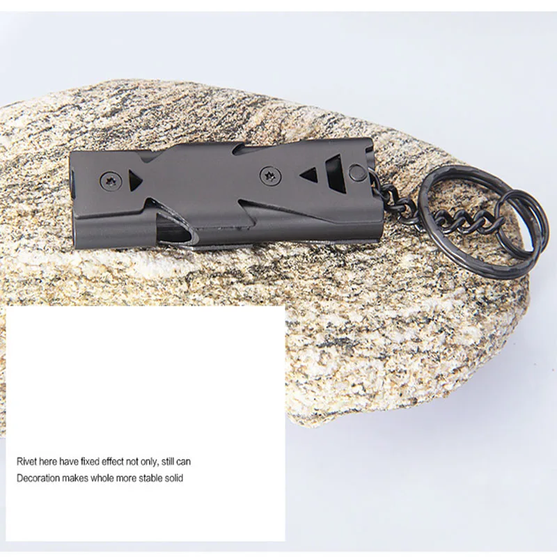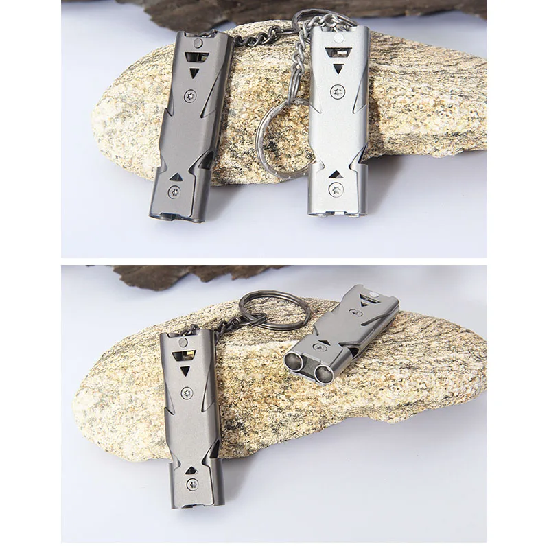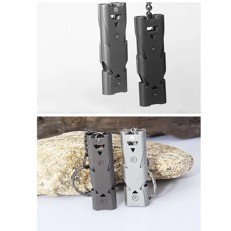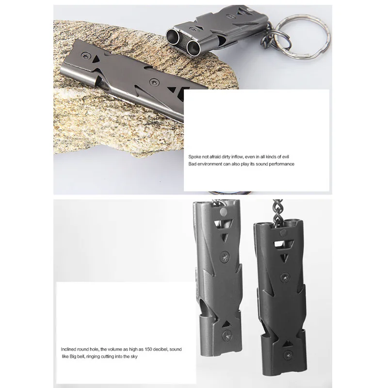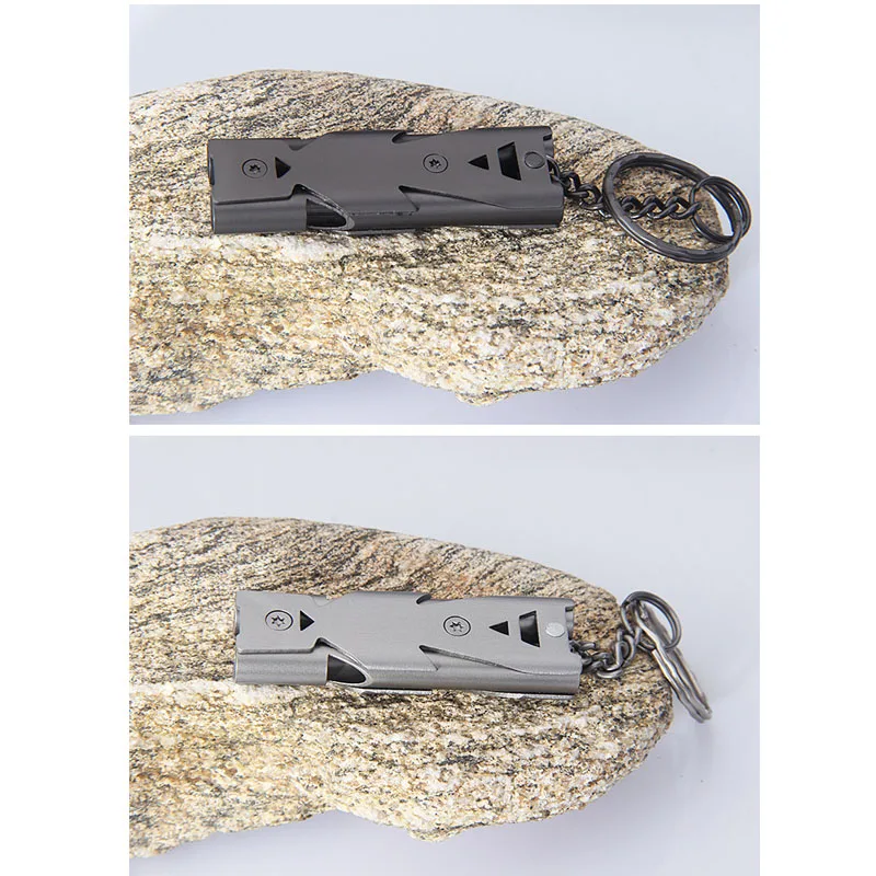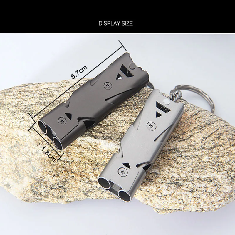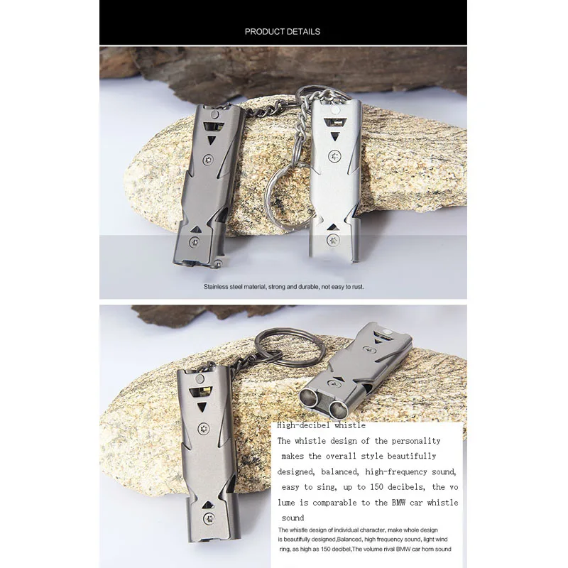 Особенности: легко выдувать, до 150 децибел, двойное отверстие, конструкция с двойной трубкой, высококачественная нержавеющая сталь, функция пряжки для ключей