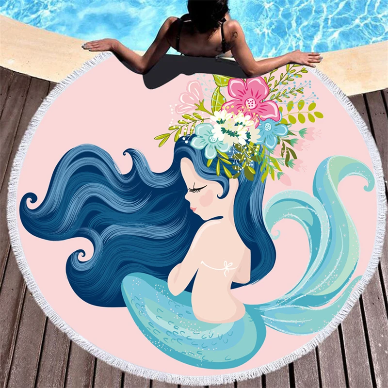 Розовые Мультяшные полотенца русалки из микрофибры Toalla Big Wheel пляжные полотенца для взрослых подарки летних детей