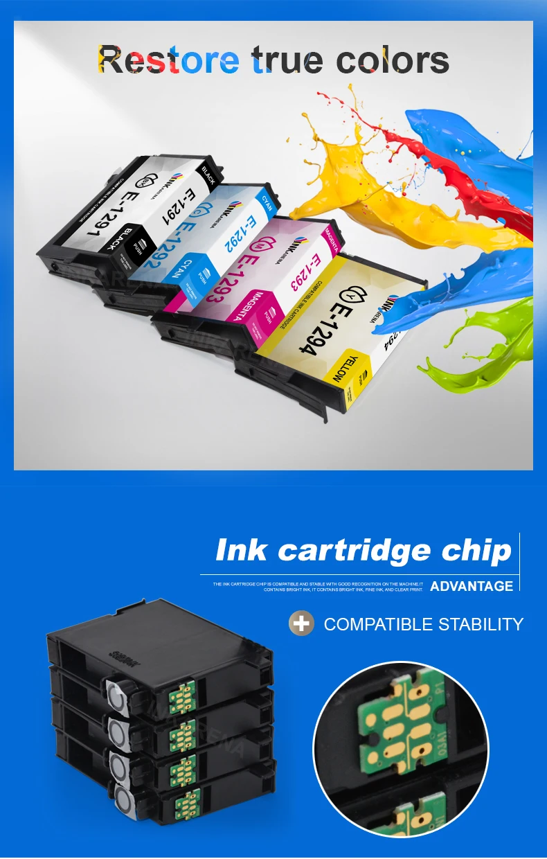 1 шт. CyanColorfor Epson T1292 чернильный картридж с чернилами и чипом