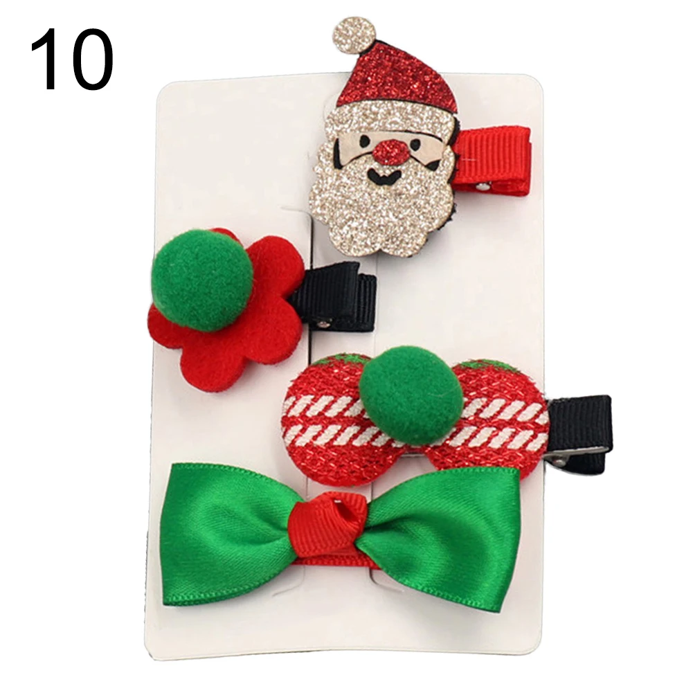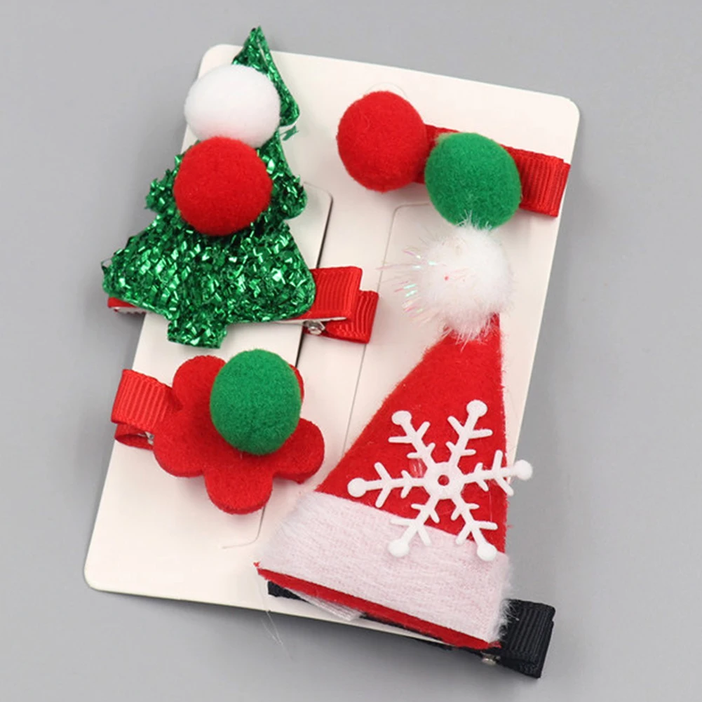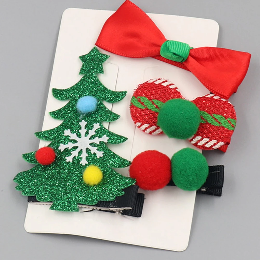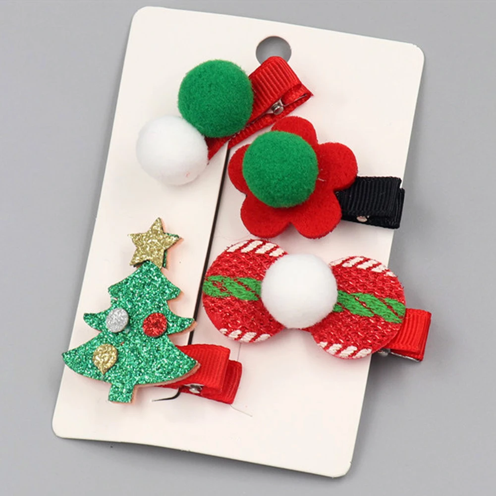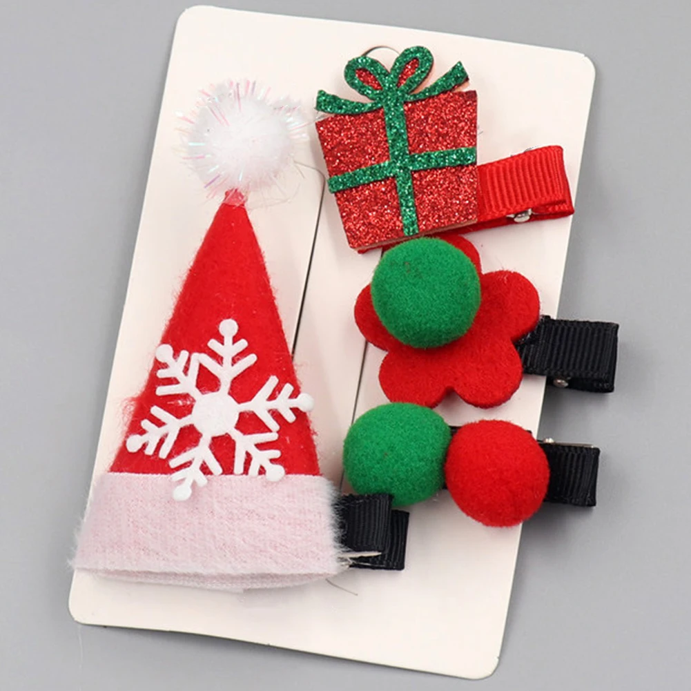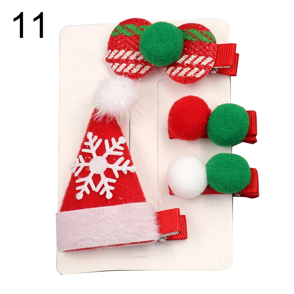 4 шт./компл. Рождественская елка колпак Санта-Клауса с бантом и помпонами; заколка для волос для маленьких девочек заколки для волос в подарок