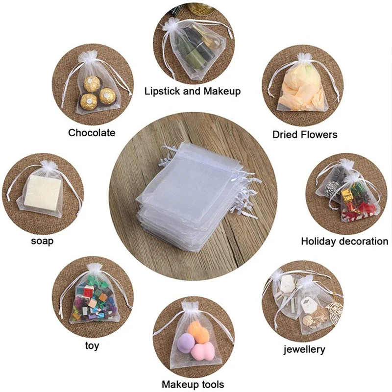 Посылка: 20 штук Цвет: белый, черный, фиолетовый, розовый, зеленый, желтый, синий, красный и так далее. Подходит для:Его можно использовать для хранения ваших украшений или других мелких предметов. Сделайте ваш подарок более красивым. Ежедневного использования:Эти высококачественные сумки из органзы отлично подходят для особых случаев, а также для удобного хранения небольших повседневных вещей, таких как часы, серьги, браслеты, misc. Ювелирные изделия, конфеты, игровые штуки и многое другое. Легко использовать:С застежкой на шнурке, которую легко открыть и закрыть шнурком. Легко открыть и закрыть шнурком: вы можете положить маленькие вещи в мешки, а затем затянуть уплотнение и распустить уплотнение, как вы хотите, чтобы вынуть вещи.Удовлетворенности наших клиентов