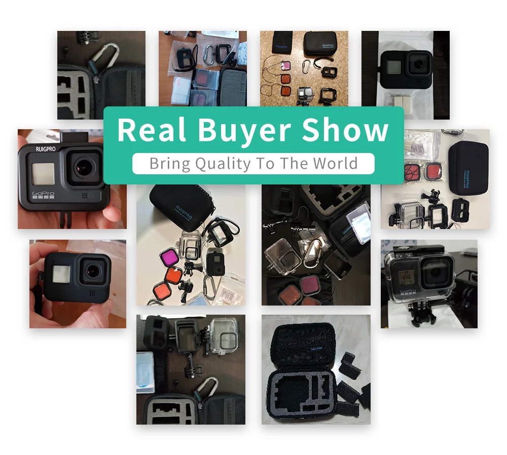 Полный комплект 1 х водонепроницаемый чехол (с основанием и винтом) 1 x закаленная пленка (1 шт., пленка на переднюю линзу, 1 шт., пленка на экран, 1 шт., маленькая пленка на экран питомца с тканевым набором) 1 x силиконовый чехол (со шнурком) Фильтры для дайвинга (красный, светильник, красный, фиолетовый, с веревками для защиты от потери)-3 шт. Пластиковая рама (с основанием и винтом)-1 шт. Сумка для хранения Ruigpro (с безопасной пряжкой)-1 шт. 1 х сумка для хранения фильтров 12 х анти-противотуманная вставка (12 шт./упак.) Примечание: камера не входит в диапазон продаж.