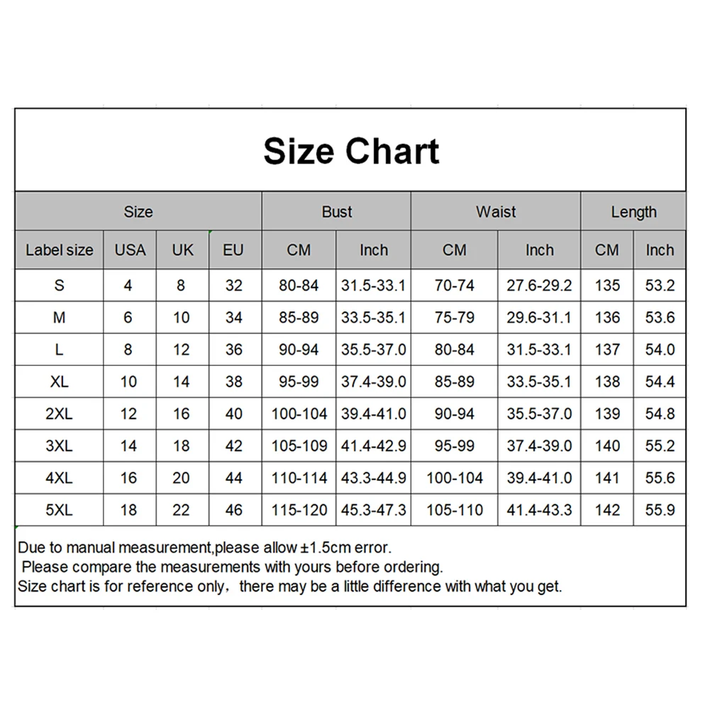 [Наш Размер 5XL] Обхват груди: 115 см-120 см/45,28 дюйма-47,24 дюйма, обхват талии: 105 см-110 см/41,34 дюйма-43,31 дюйма, длина: 142 см/55,91 дюйма (прибл.)