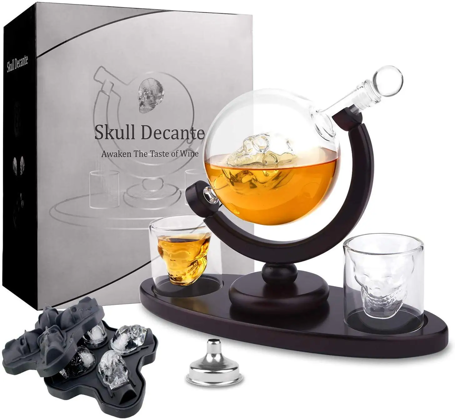 Разработанный, чтобы быть тонким и легким, чтобы вы могли легко носить его на держателе соснового дерева, каждый графин ликера содержит интригующий плавающий стеклянный череп для жуткого ощущения. Благодаря стеклянной стопке с резиновой основой, она может держать в аромате и аромате любого из ваших любимых духов. Обслуживайте своих друзей на вашей следующей вечеринке на хэллоуин или держите круглый год стильным готическим прикосновением.