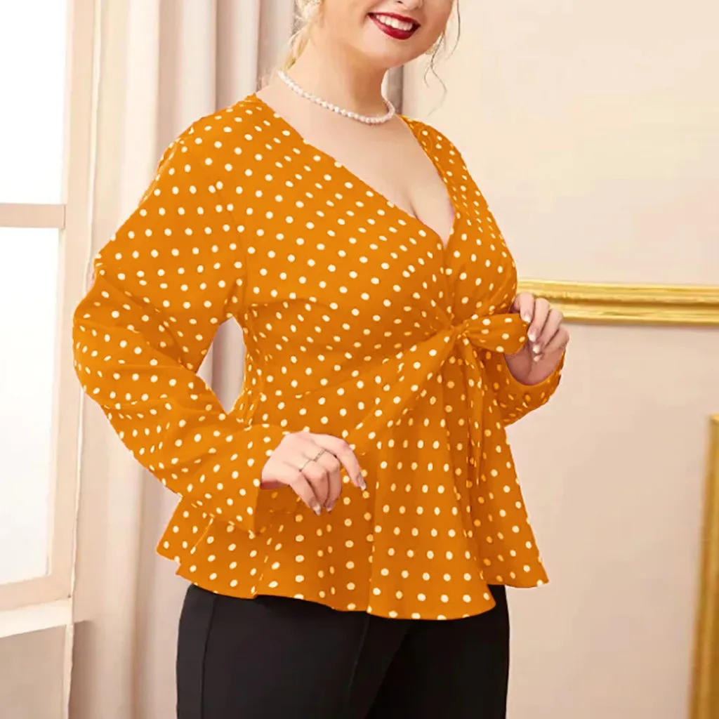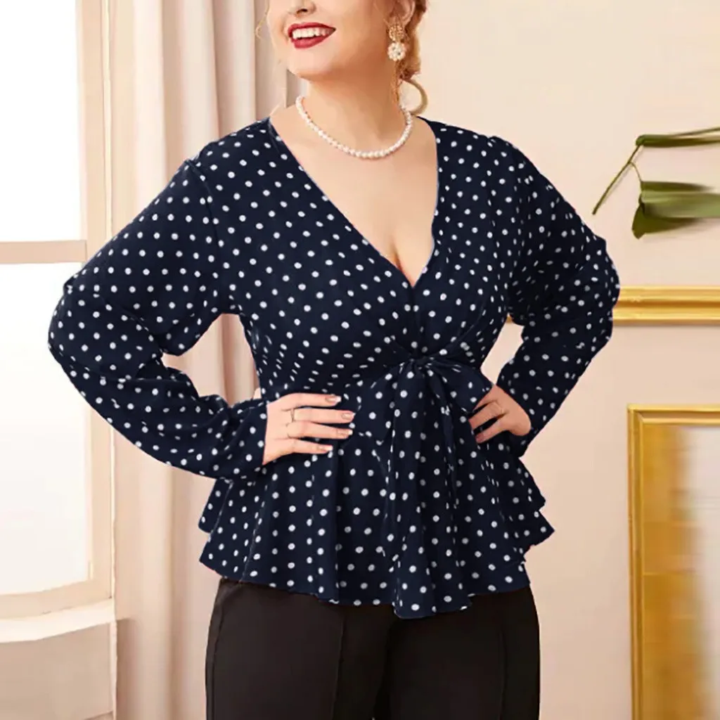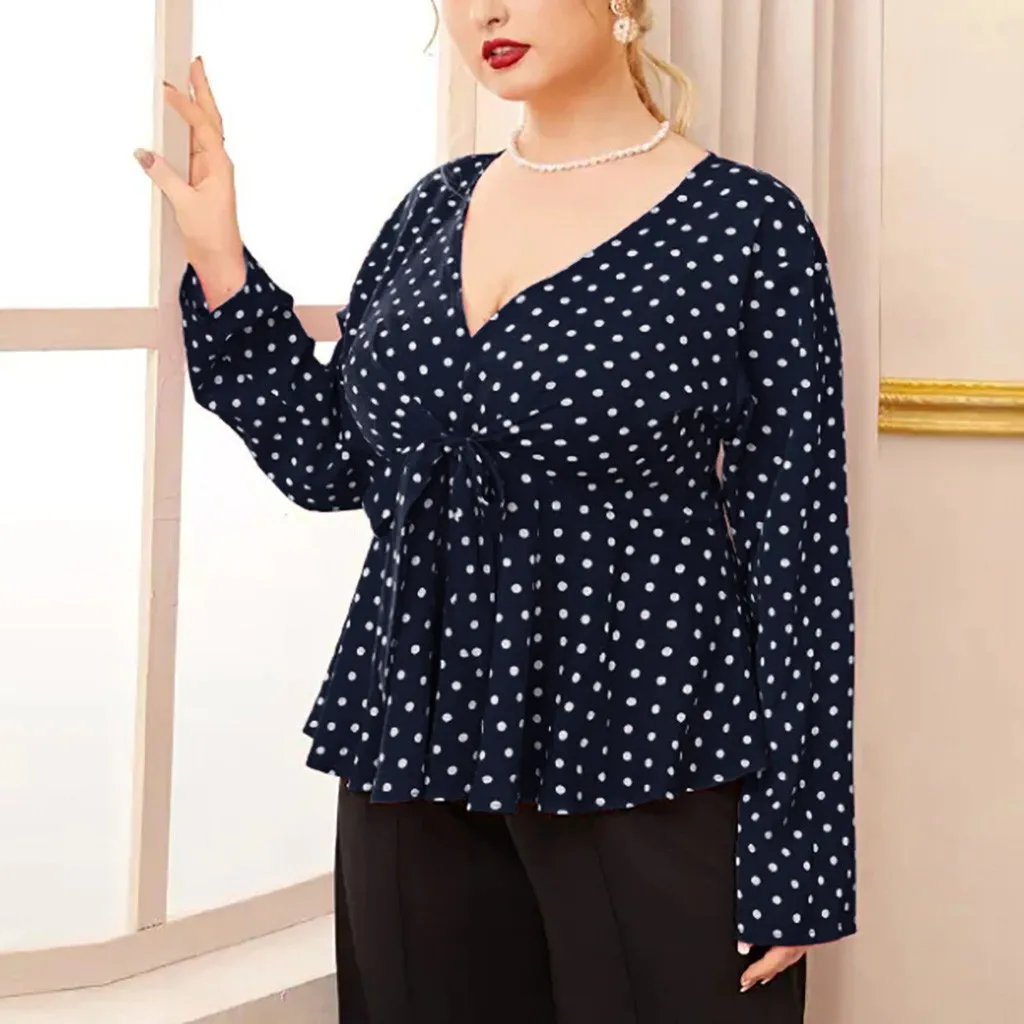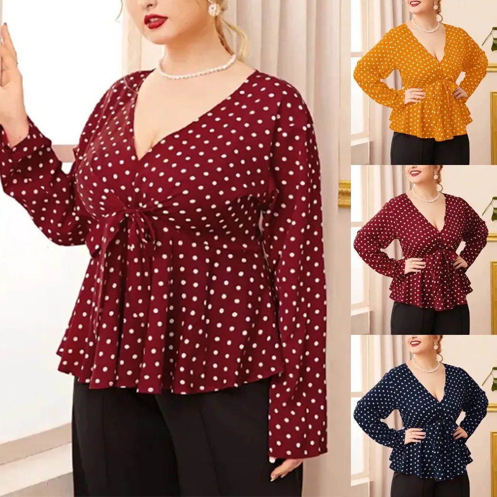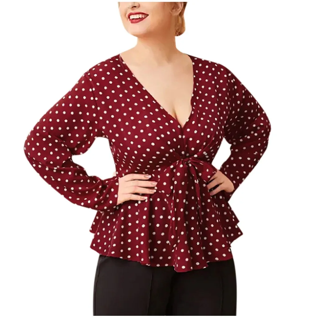 Женская рубашка с длинным рукавом и v-образным вырезом размера плюс