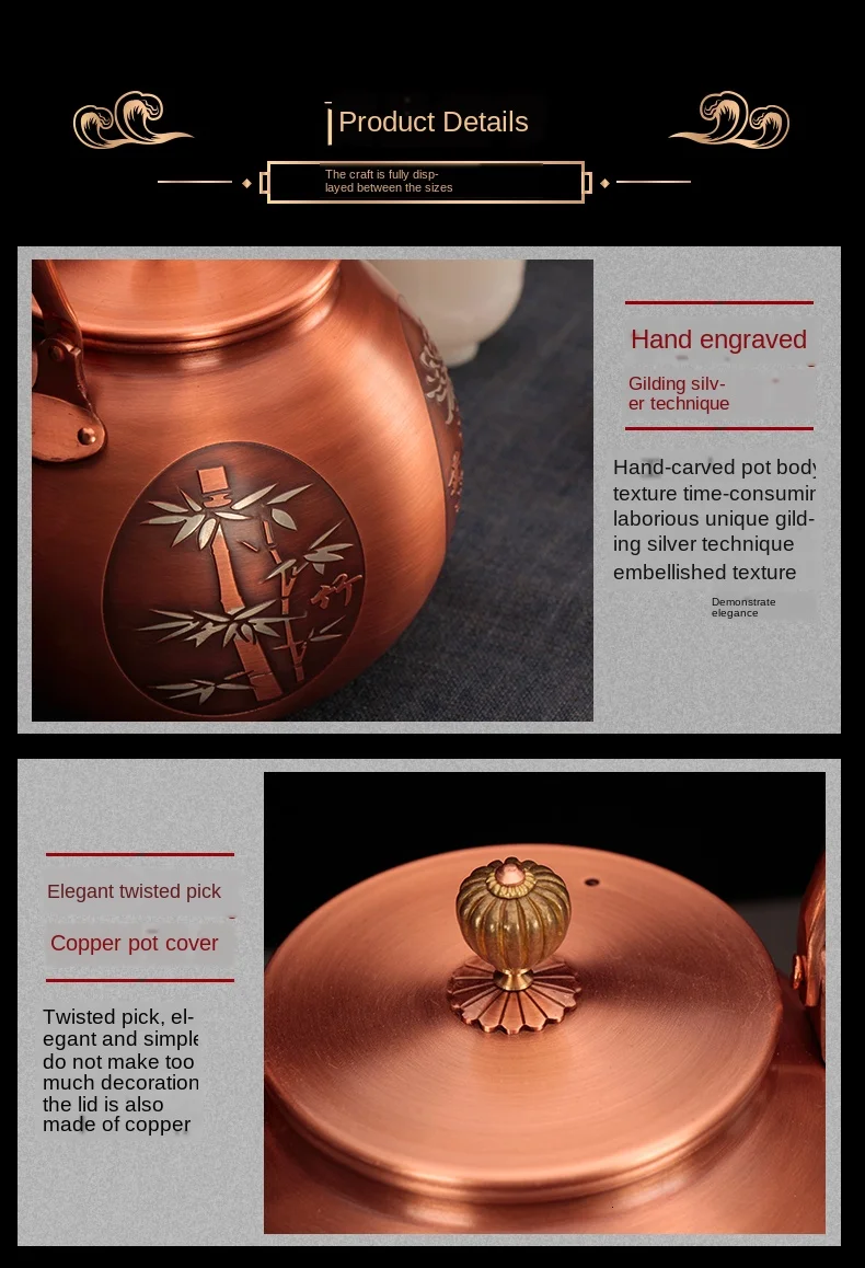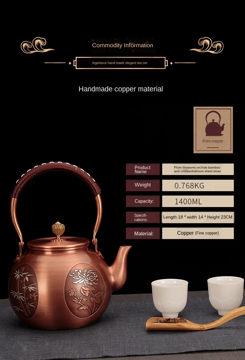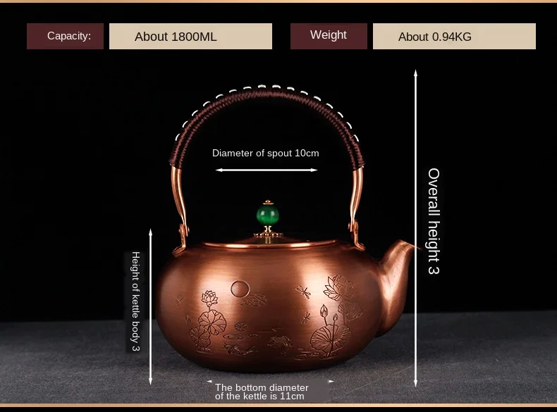 Медный котел ручной работы котел из чистой меди кунг-фу из чистой меди утолщенный чайник из чистой медиUS $68,00 /