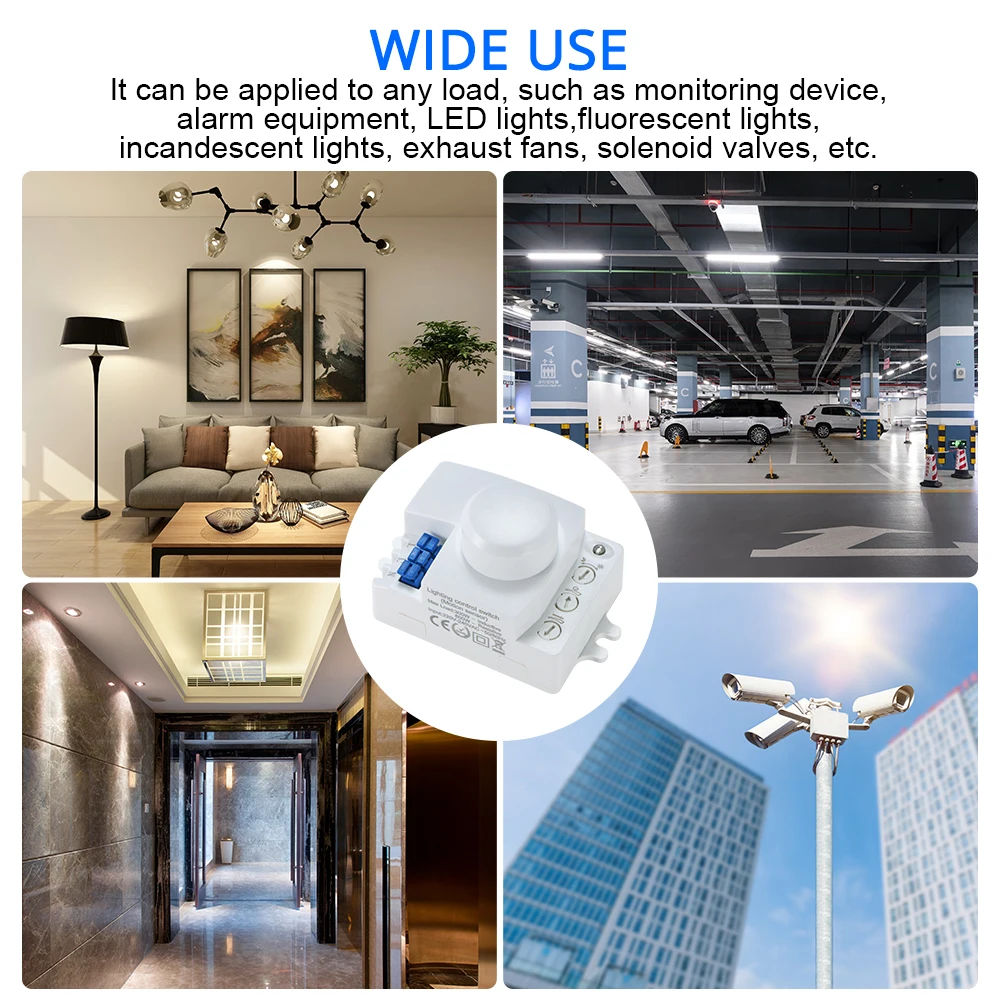 Детектор движения имеет микроволновый датчик, основанный на передовых технологиях, который безопасен и чувствителен, чем инфракрасный датчик, и сигнал обнаружения может проникать через двери, стеклянные панели или тонкие стены.