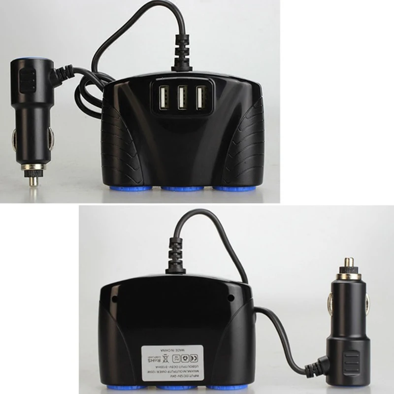 Конвертируйте и Увеличьте прикуриватель автомобиля с 1 до 3 гнезда.