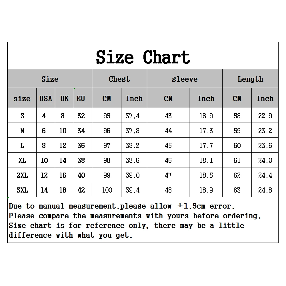 [Наш Размер 3XL] Обхват груди: 100 см/39,4 дюйма, рукав: 48 см/18,9 дюйма, длина: 63 см/24,8 дюйма (прибл.)