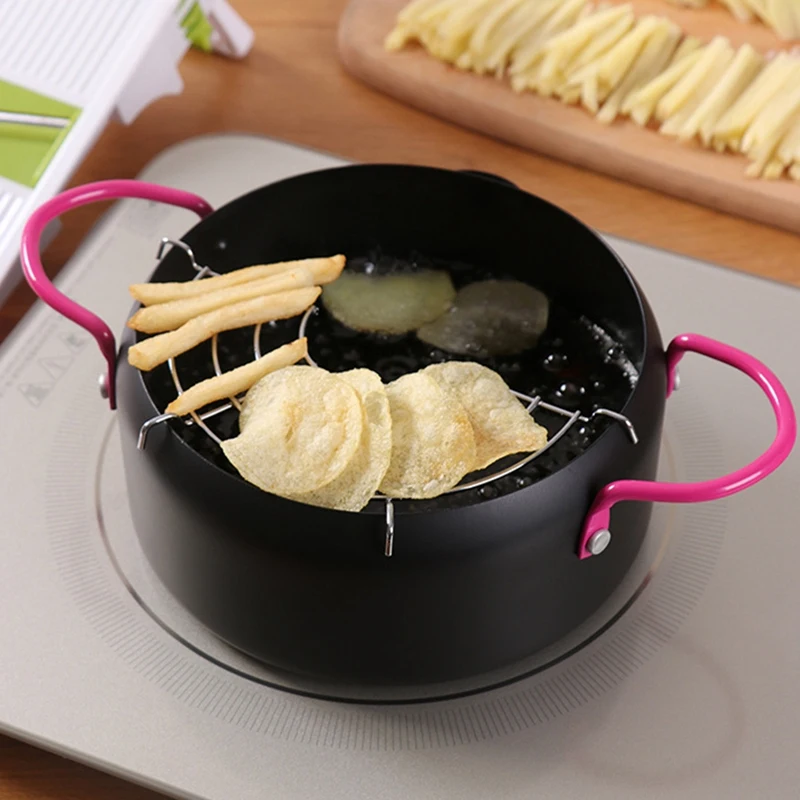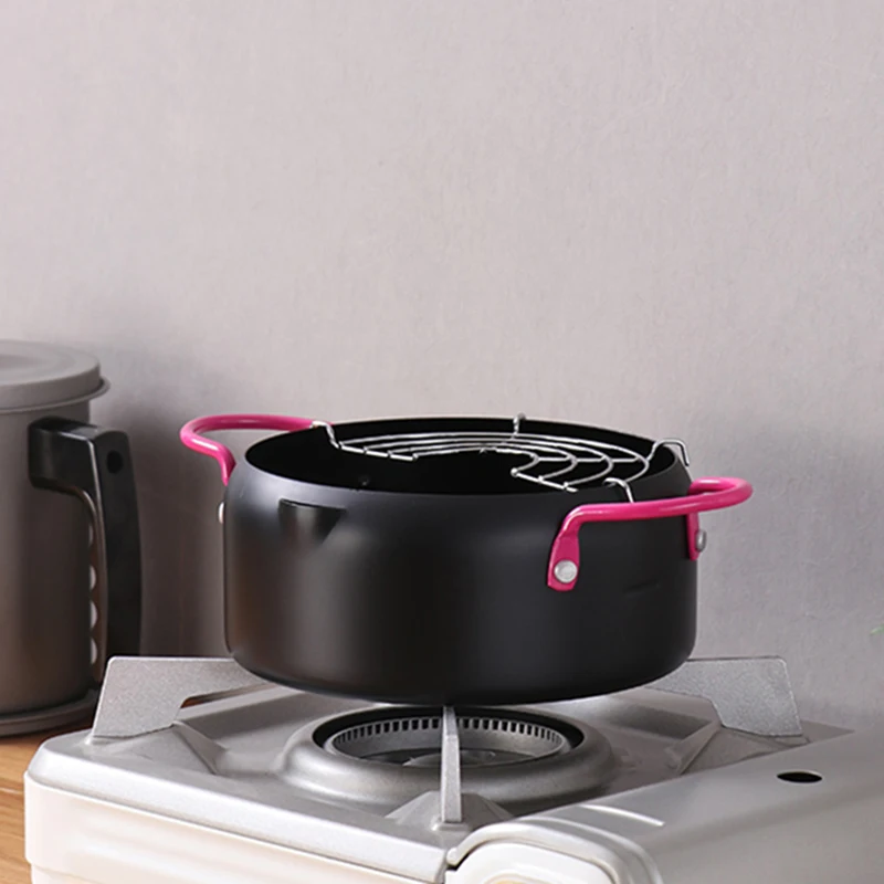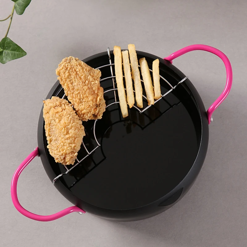 18cm Steel Japanese Style Tempura Frying Pot Portable Outdoor Pan Egg Pancake Omelette Small Deep Fryer Cooking Tool