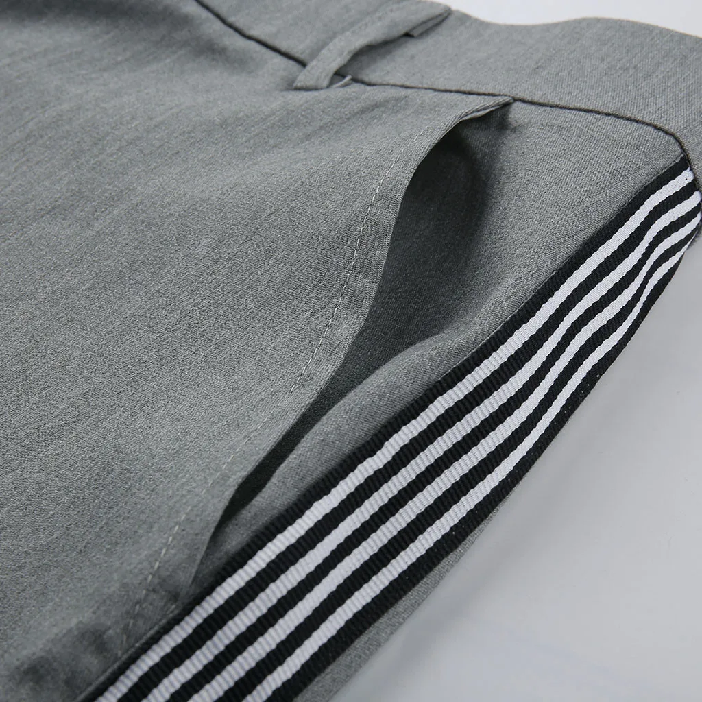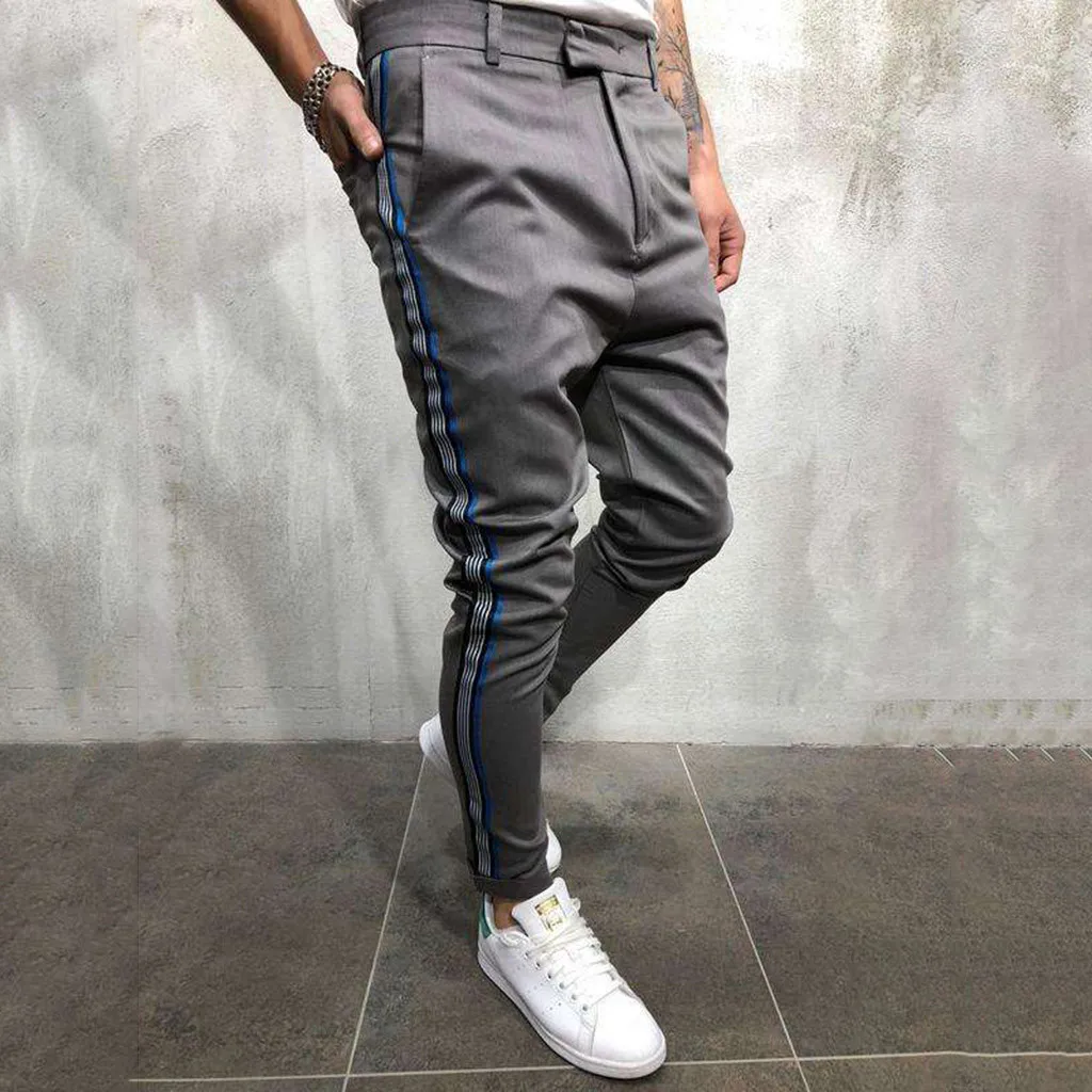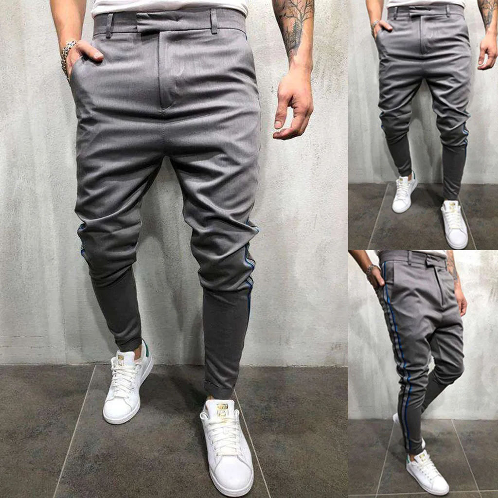 Модные мужские тонкие однотонные повседневные спортивные тканые брюки с карманами