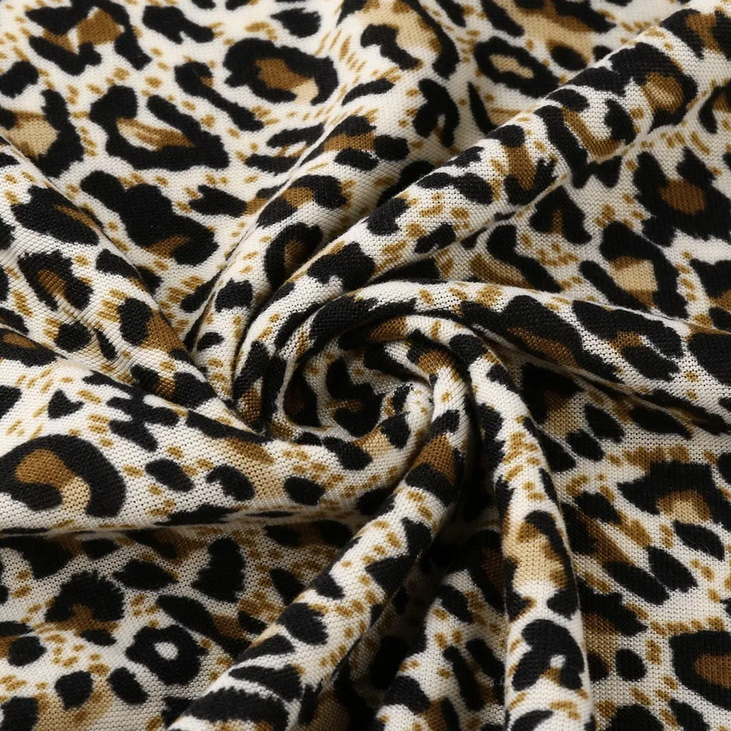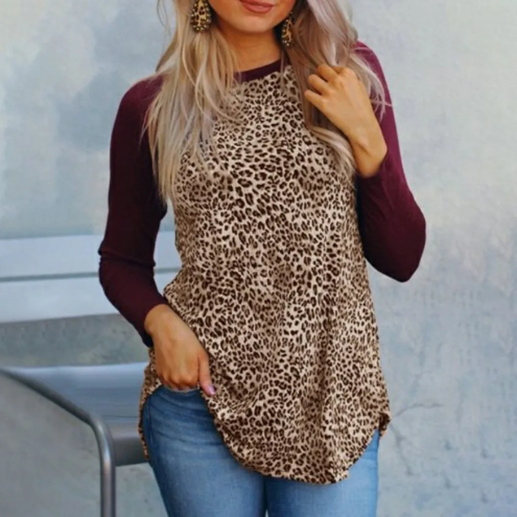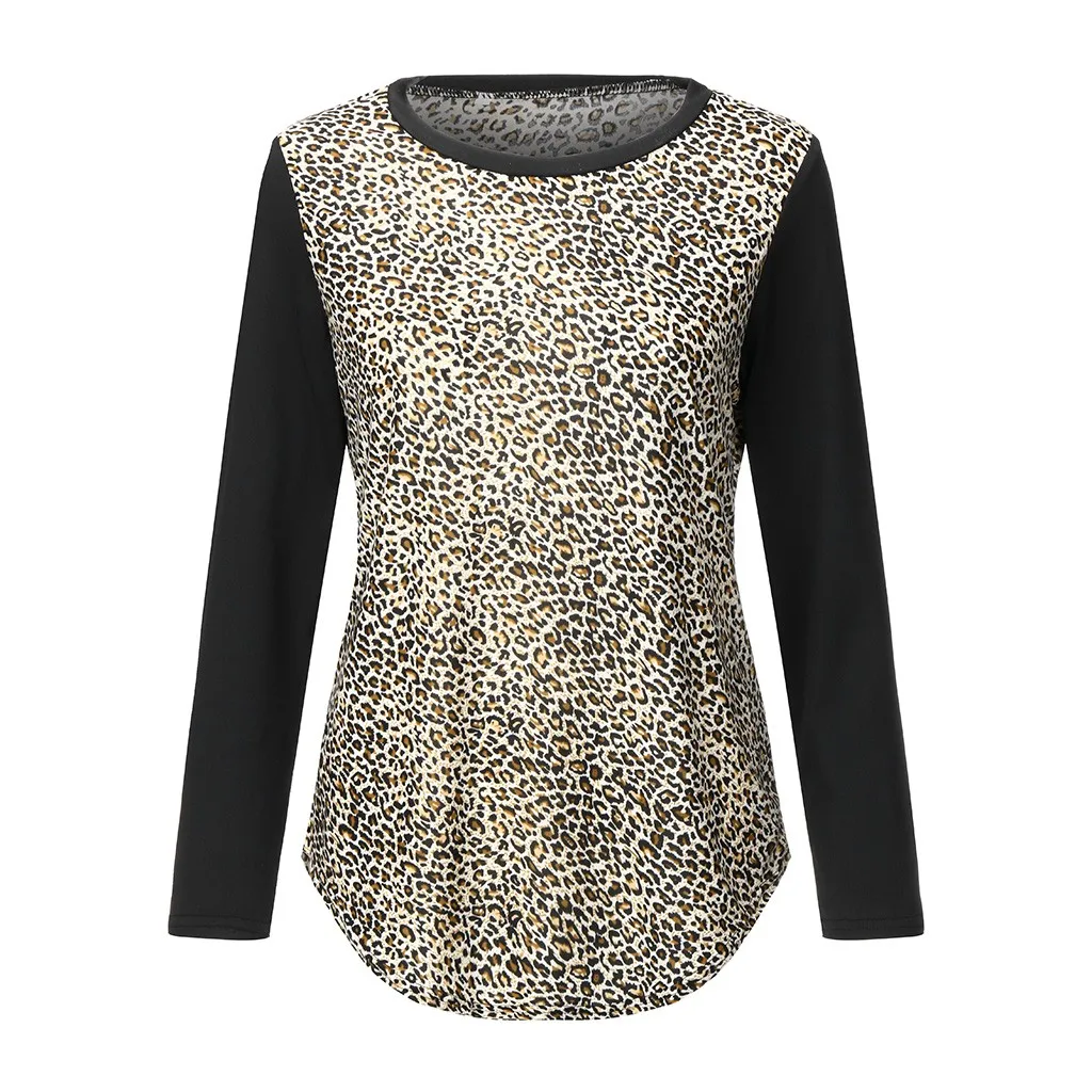 Женский пуловер с круглым вырезом, длинными рукавами и леопардовым принтом