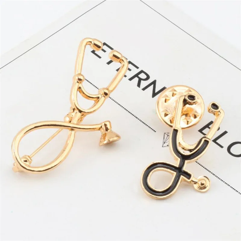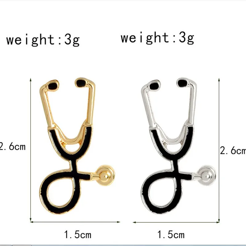 Название продукта: брошка мультфильм булавки Форма: стетоскоп Материал: экологически чистый металл Цвет: золотой, серебряный, черный Размеры: 2,6 см * 1,5 см, 3,6 см * 2,2 см Стиль: Модный милый мультфильм