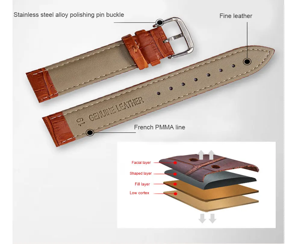 Утхай P21 кожаный ремешок для часов 12/14/16/18/20 мм/22 мм/24 мм