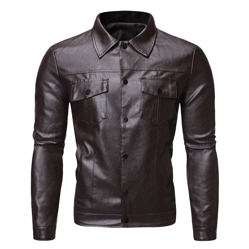 2019 осень и зима новый мужской мотоциклетный тонкий кожаный мужской однотонный однобортный пиджак J770
