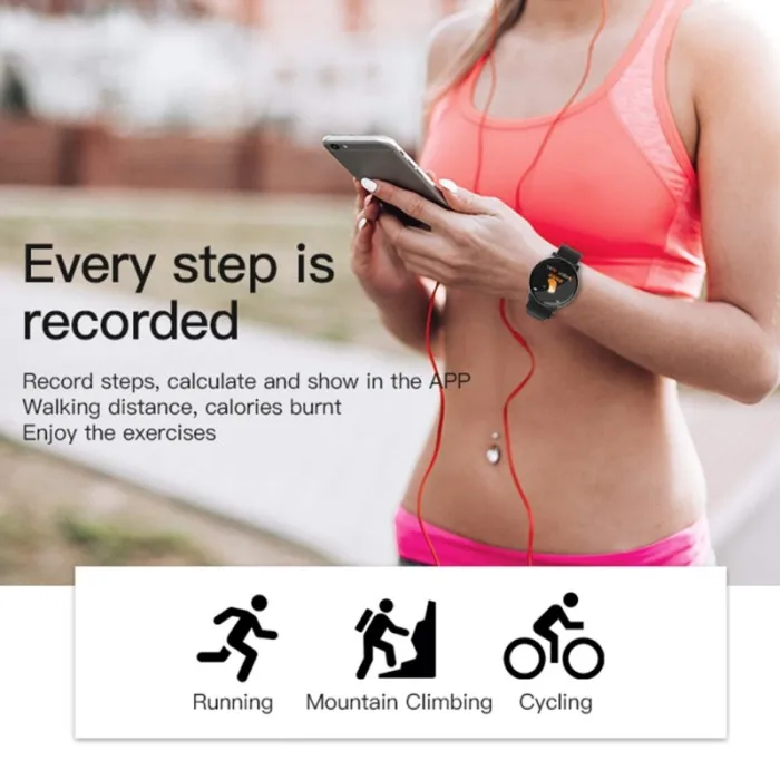 3. Пошаговая функция:Бег, альпинизм, езда, всесторонняя запись шагов, отображение в реальном времени состояния калорий, умный помощник для фитнеса, потери веса