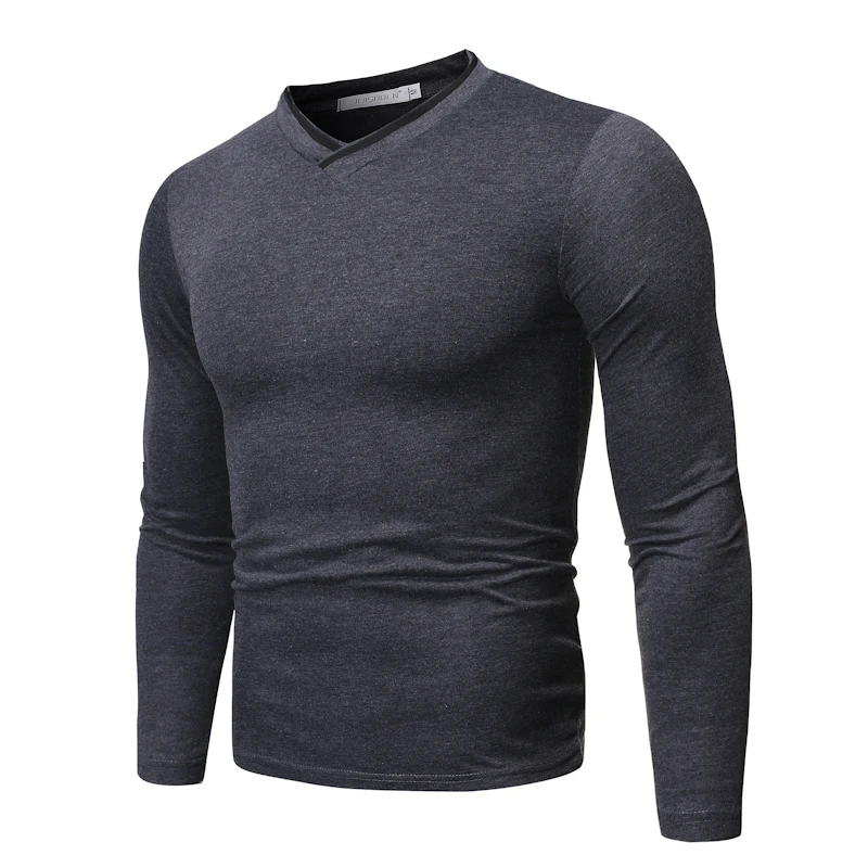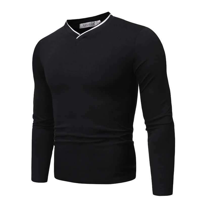 2019 осенняя и зимняя новая мужская Тонкая футболка с v-образным вырезом и длинными рукавами большого размера, тонкая повседневная мужская рубашка J776