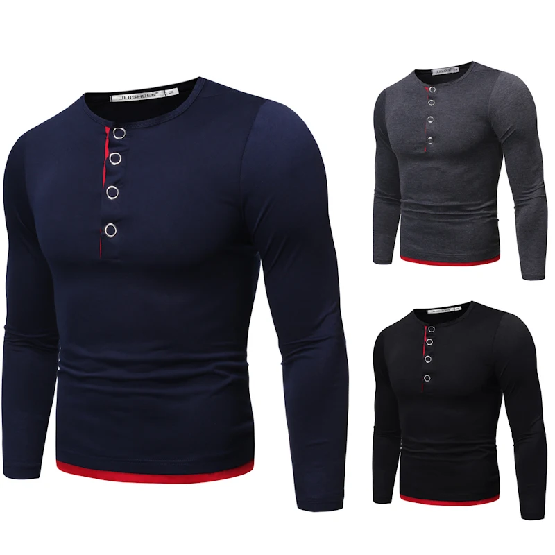 2019 осень и зима новая мужская повседневная поддельная двухкомпонентная Железная пряжка декоративная с длинным рукавом Тонкая футболка большой размер J777