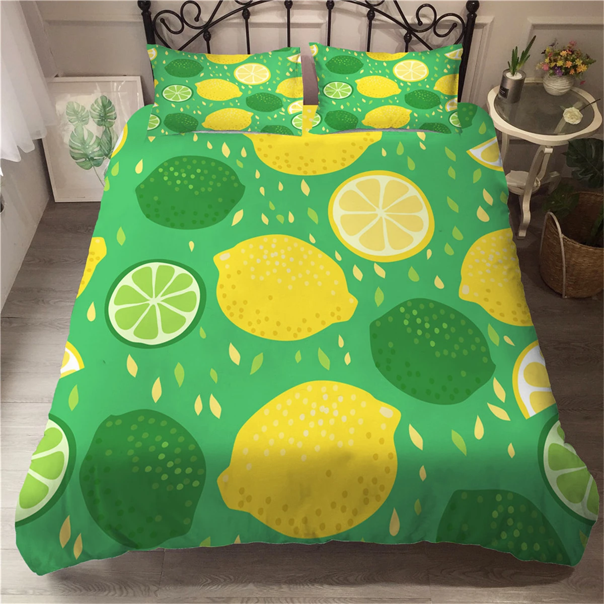 Комплект постельного белья с лимоном, свежие фрукты, пододеяльник, односпальная двуспальная кровать, набор одеял, покрывало для мальчиков и девочек, для комнаты, пододеяльник, желтый, зеленый