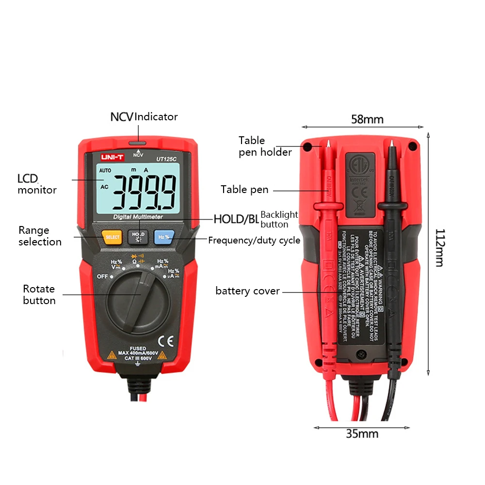 Портативный цифровой мультиметр размера ладони. Двойное литье под давлением, водонепроницаемость и защита от пыли.