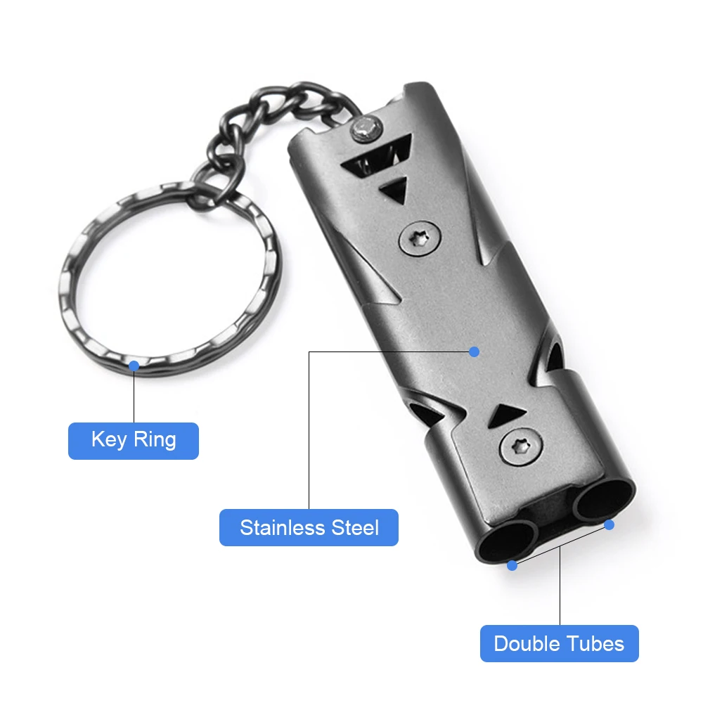 Свисток с двойными трубами может обеспечивать до 150 децибел, можно услышать издалека.