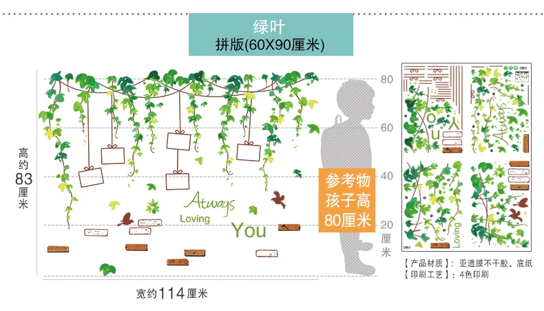 Домашний декор зеленое растение животное дети Декор стены Бумага наклейки для украшения комнаты спальни Hogar модерно плакат дом