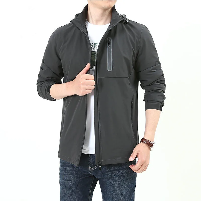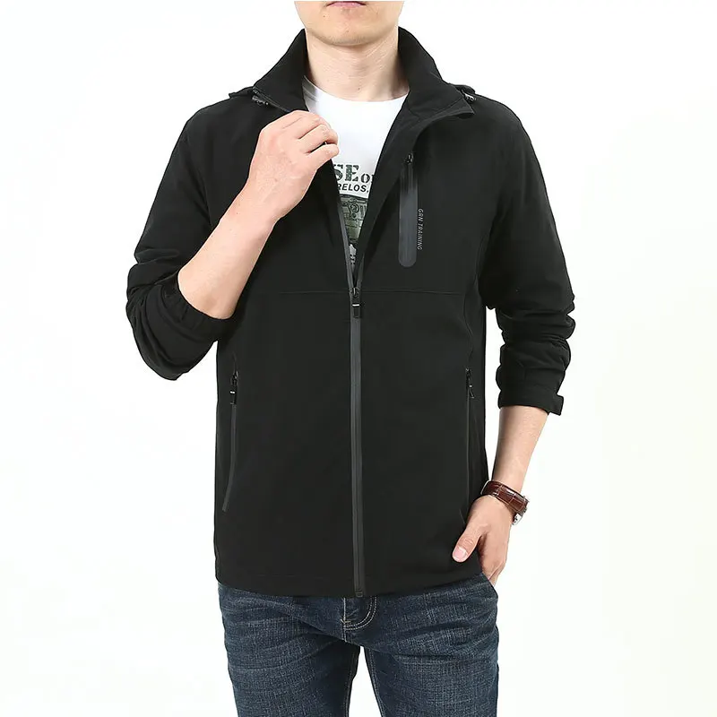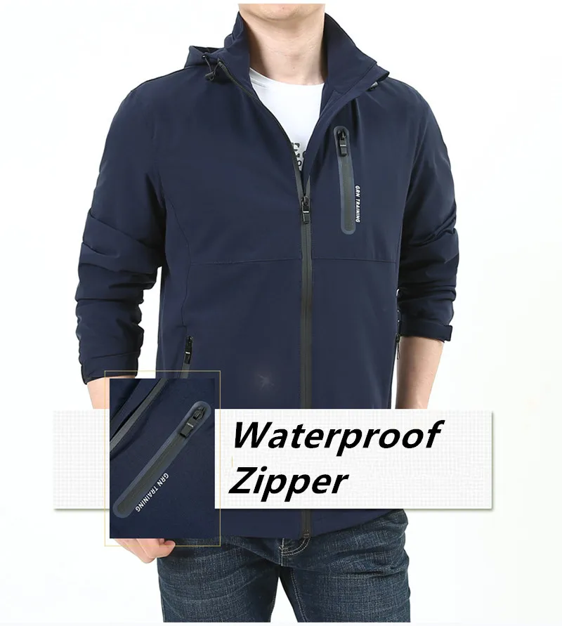 Мужская куртка, ветрозащитная, теплая, однотонная, легкая, с капюшоном, на молнии, модное пальто, верхняя одежда, мужская Осенняя спортивная одежда с длинным рукавом, трикотажные изделия
