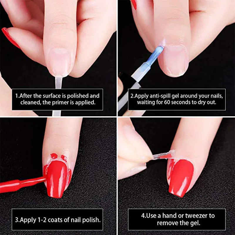 Описание продукта: Легкий Отшелушивающий клей для ногтей защитный лак для ногтей для дизайна ногтей DIY Защита для кожи пальцев лак жидкая Латексная лента масляный гель Избегайте лака для ногтей, чтобы испачкать кутикулу и пальцы. Жидкая лента для защиты ваших ногтей при окрашивании. Он отлично пахнет, как и запах цветка. Мини-размер позволяет носить его везде. Профессиональный гель для ногтей, Экологически чистая формула, не повредит руку Защита от перелива, поможет вам создать идеальный Нейл-арт. Посылка в комплект входит: 1 бутылка 5 мл Отшелушивающий латекс для ногтей Профессиональный использование: Шаг 1: Нанесите базовый слой после полировки. Шаг 2: Нанесите его вокруг края ногтя, подождите 60 с, чтобы высохнуть. Шаг 3: нанесение лака для ногтей. Шаг 4: Оторвите его вручную или пинцетом.