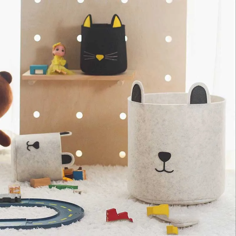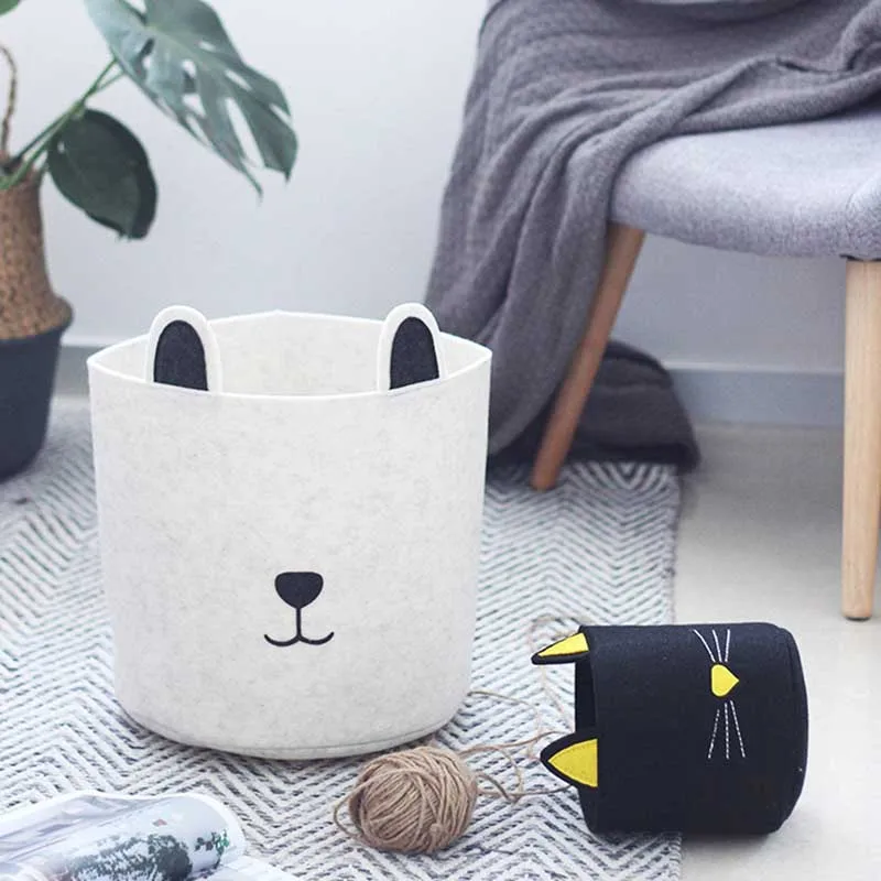 Нордическая мультяшная собака кошка войлочная корзина для хранения детских игрушек ящик для хранения корзина для белья ведро