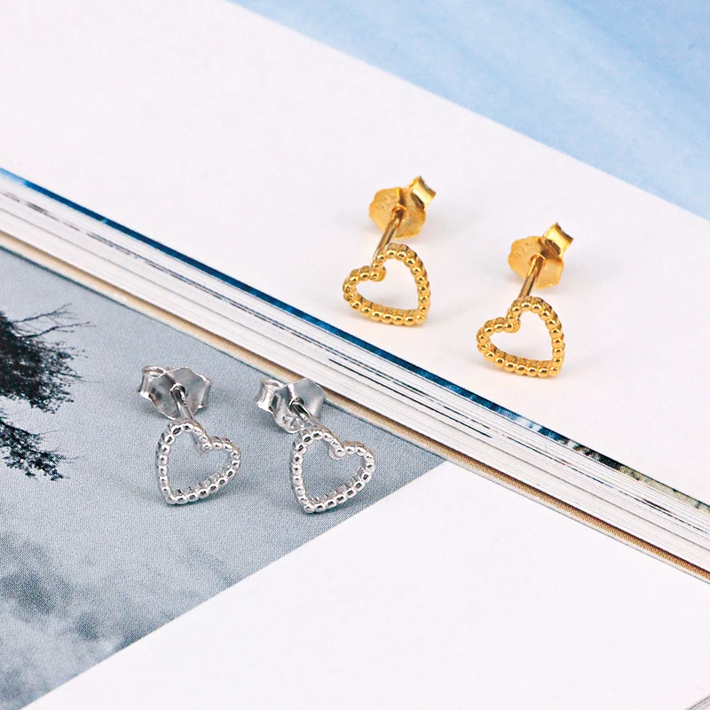 ROXI Модные серьги-гвоздики в форме сердца из стерлингового серебра 925 пробы, минималистичные бусины, полые сердечки для женщин, корейские вечерние ювелирные изделия, подарки