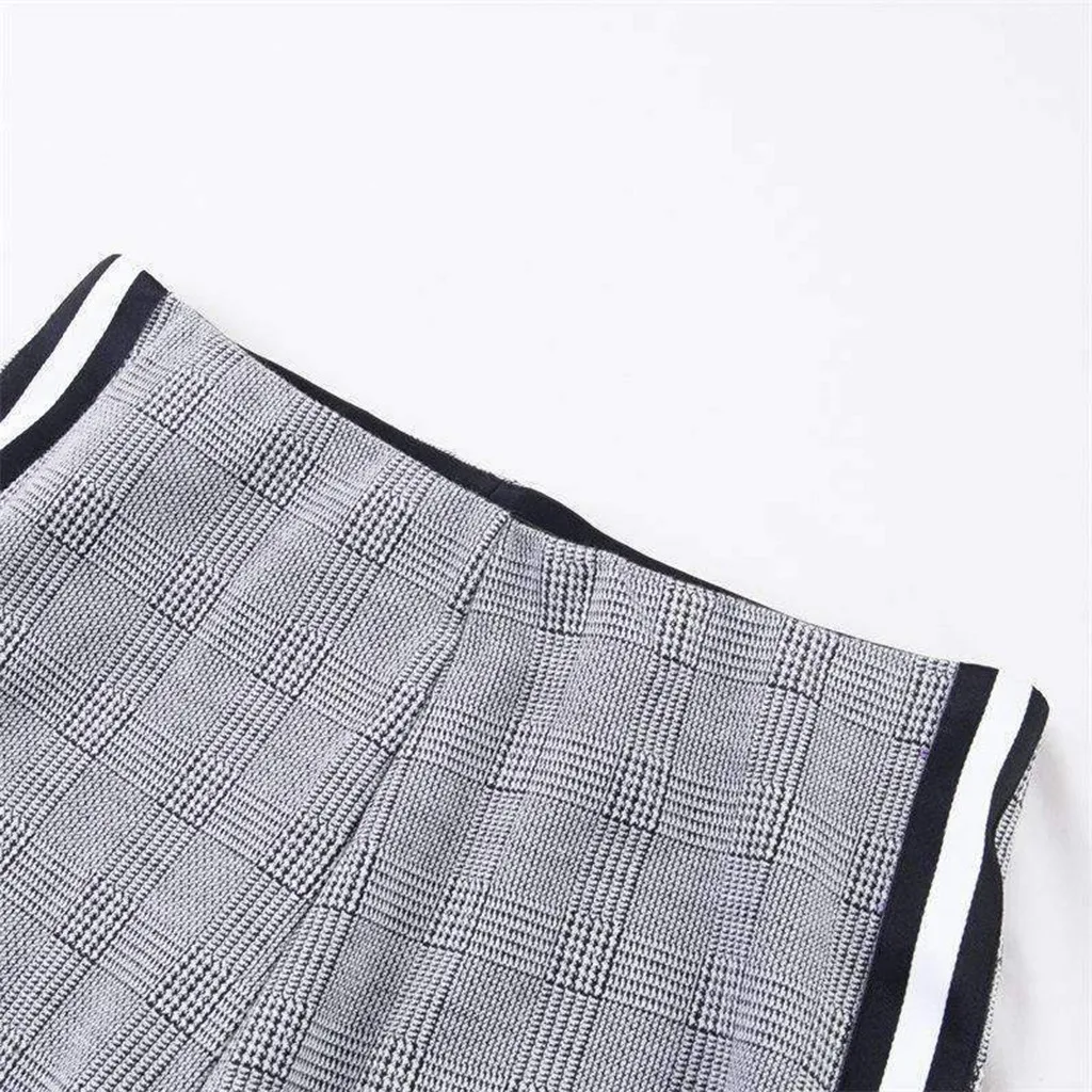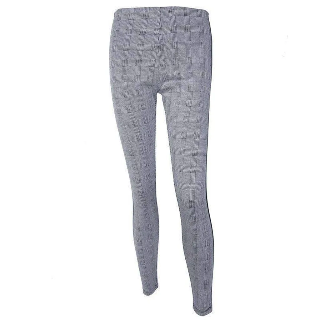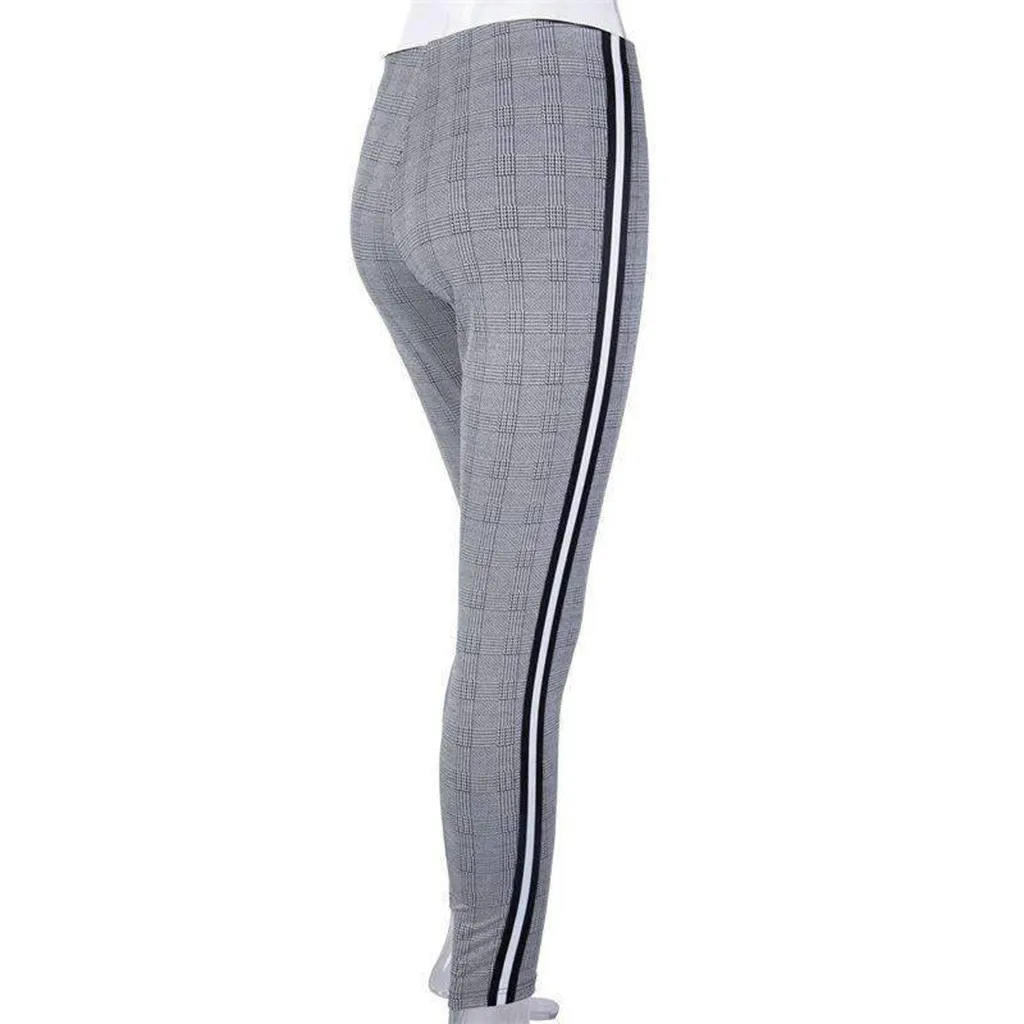 Женская мода Высокая талия Bodycon полосатый плед печатных спортивные брюки