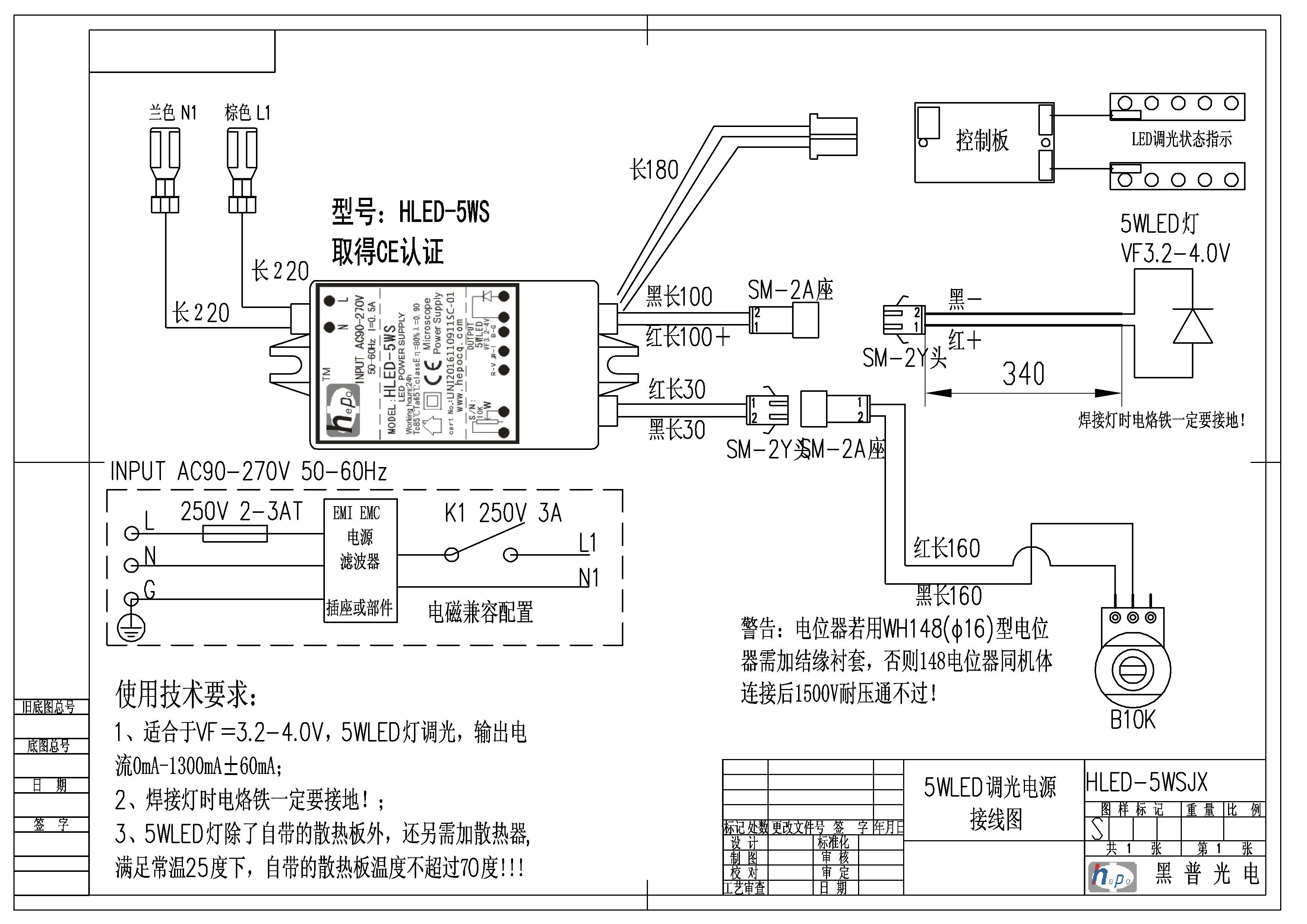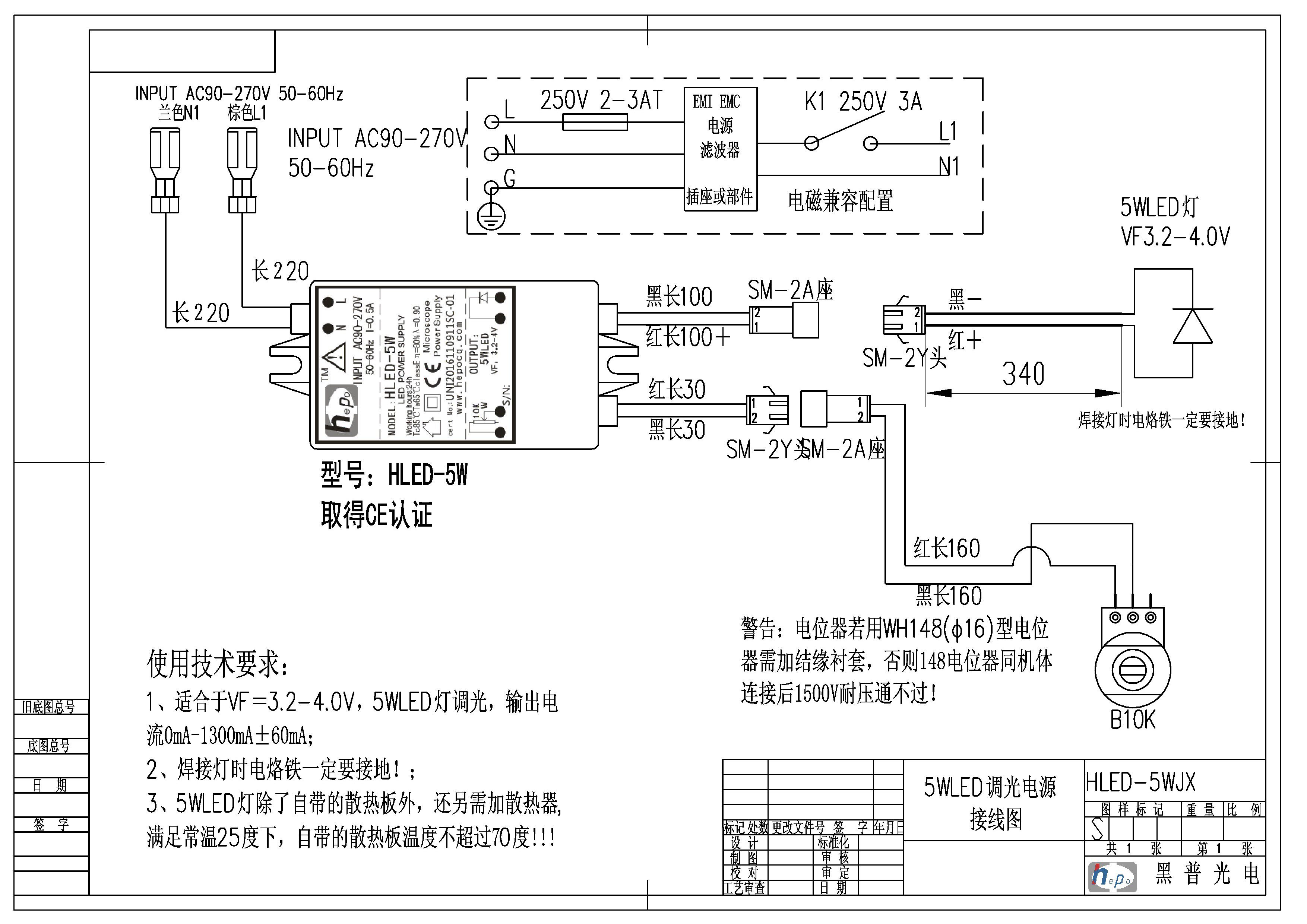 Схема подключения HLED-5WS (A10K для потенциометра):