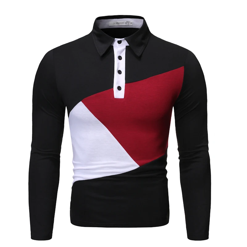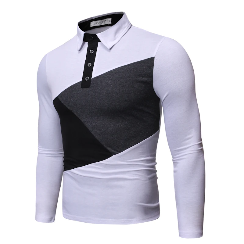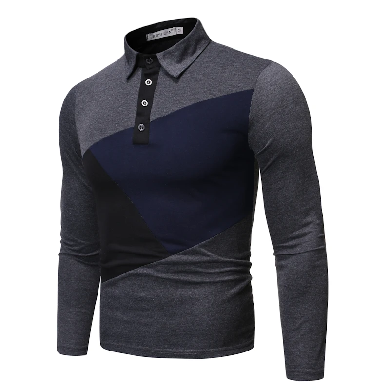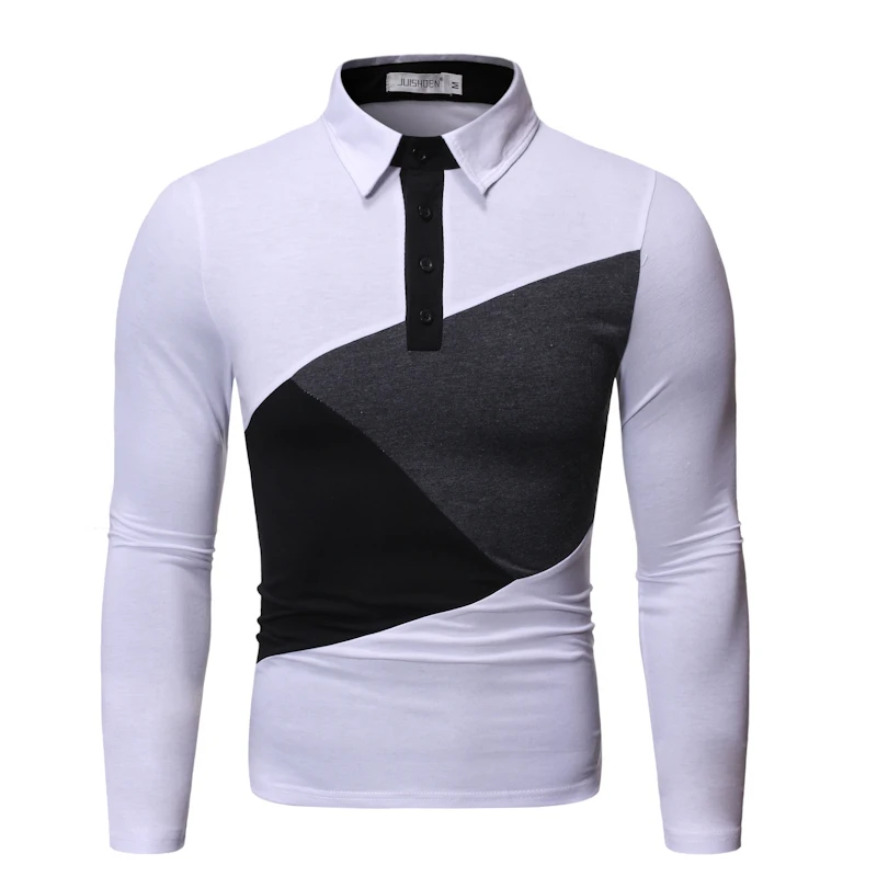 Осень Новая мужская строчка большого размера с длинными рукавами рубашка мужская Тонкая футболка с отворотом J789