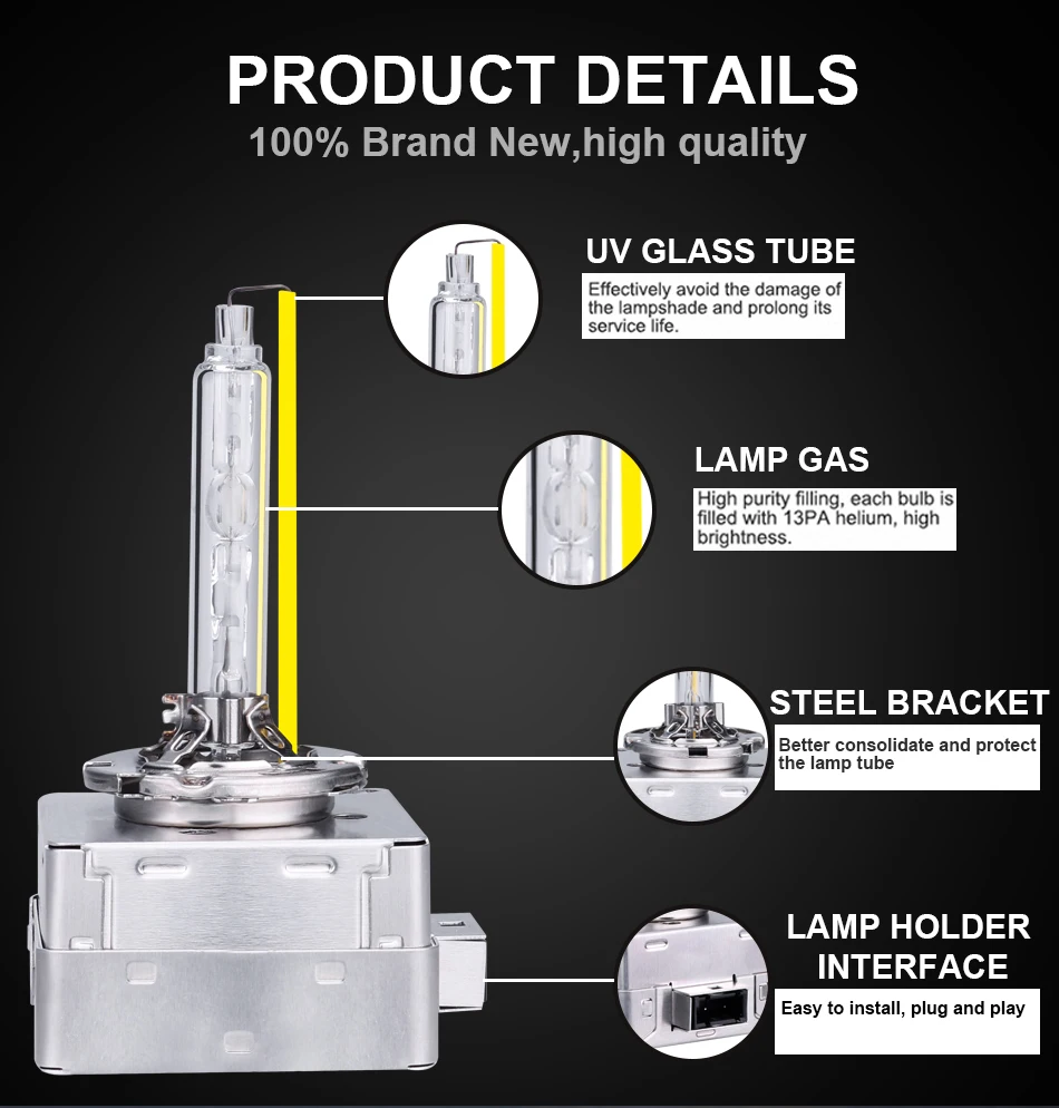 Информация об изделии Тип розетки: D1S D2S D3S D4S / D1R D2R D3R D4R D2C Светильник источник света: ксеноновая лампа Мощность: 35 Вт Напряжение: 12V Цветовая температура: 4300K 6000K 8000K 10000K Особенности: длительный срок службы, высокое качество, супер яркий Тип: фары