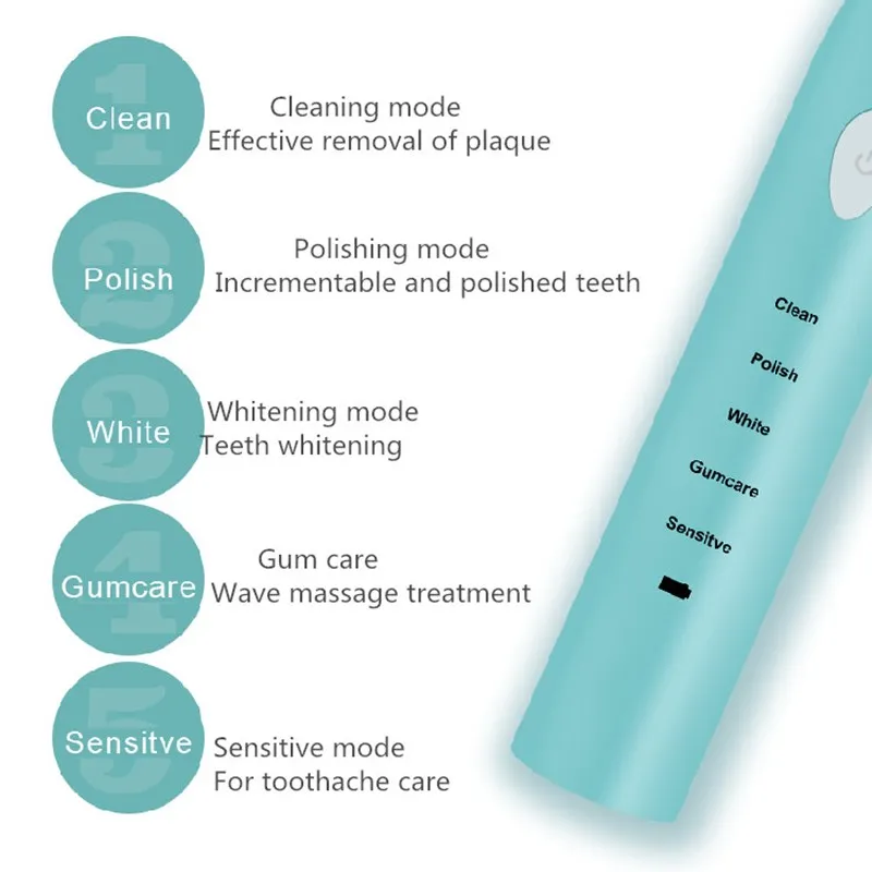 Водонепроницаемая электрическая зубная щетка USB перезаряжаемая звуковая электрическая зубная щетка ультразвуковая зубная щетка 4 сменные насадки VS S100