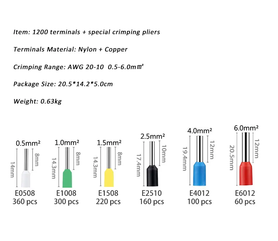 Item: 1200pcs terminals + special crimping pliers
