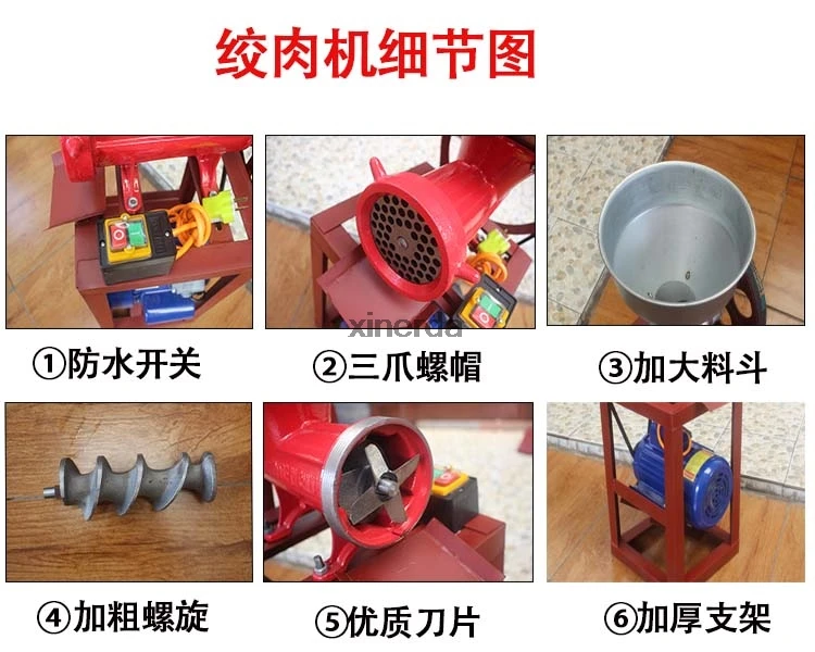 Наименование: электрическая мясорубка Напряжение: 220 В Мощность двигателя: 2.2квт Материал: чугун Скорость: 1400 об/мин Шестерня: однокнопочный переключатель Применимые случаи: рестораны, фермы, мясные магазины Размер изделия: 380*300*780 мм Вес брутто: около 28 кг Посылка входит: 1 шт. электрическая мясорубкаДемонстрация товара: